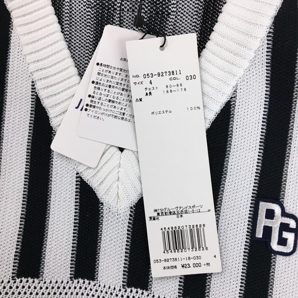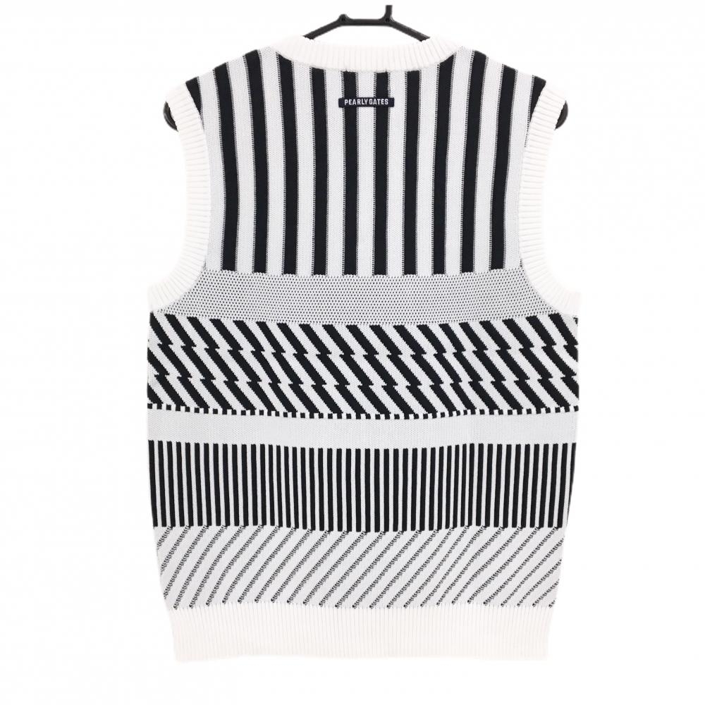 【新品】パーリーゲイツ ニットベスト 白×ダークネイビー 総柄 胸ロゴ Vネック メンズ 4(M) ゴルフウェア PEARLY GATES