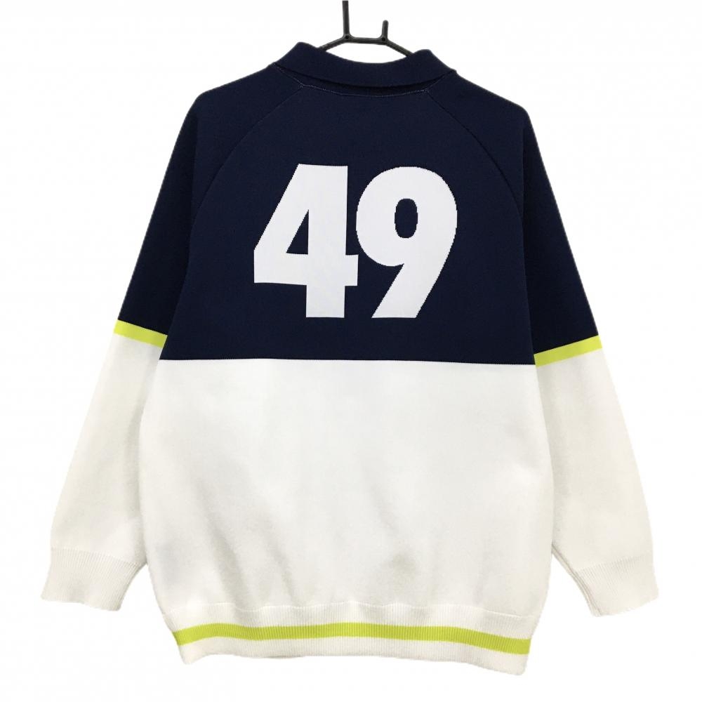 【超美品】TFW49 襟付セーター 白×ネイビー ロゴ 抗ピリング性 UVカット ニット メンズ L ゴルフウェア TFW49