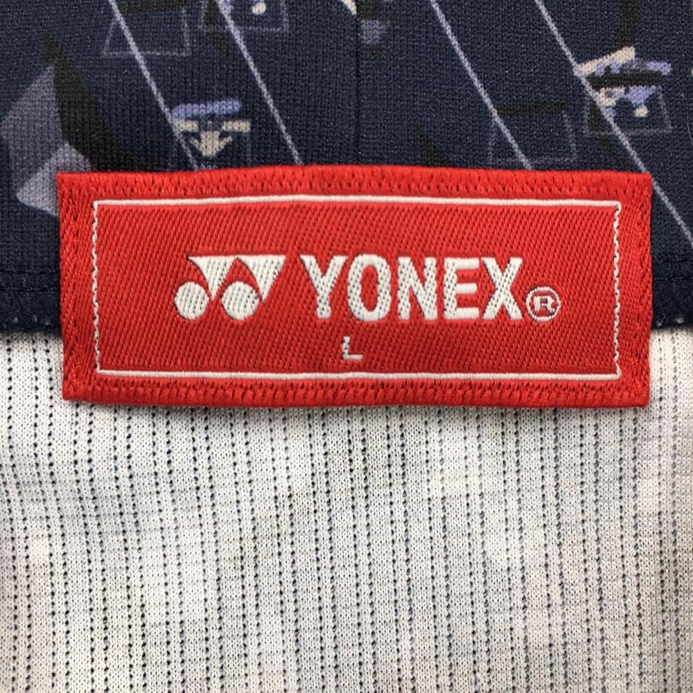 【超美品】ヨネックス 長袖ハイネックシャツ ネイビー×ライトブルー 総柄 スキー場 HEAT CAPSULE レディース L ゴルフウェア YONEX