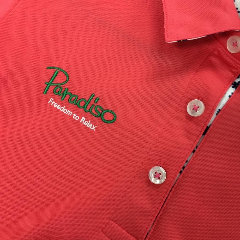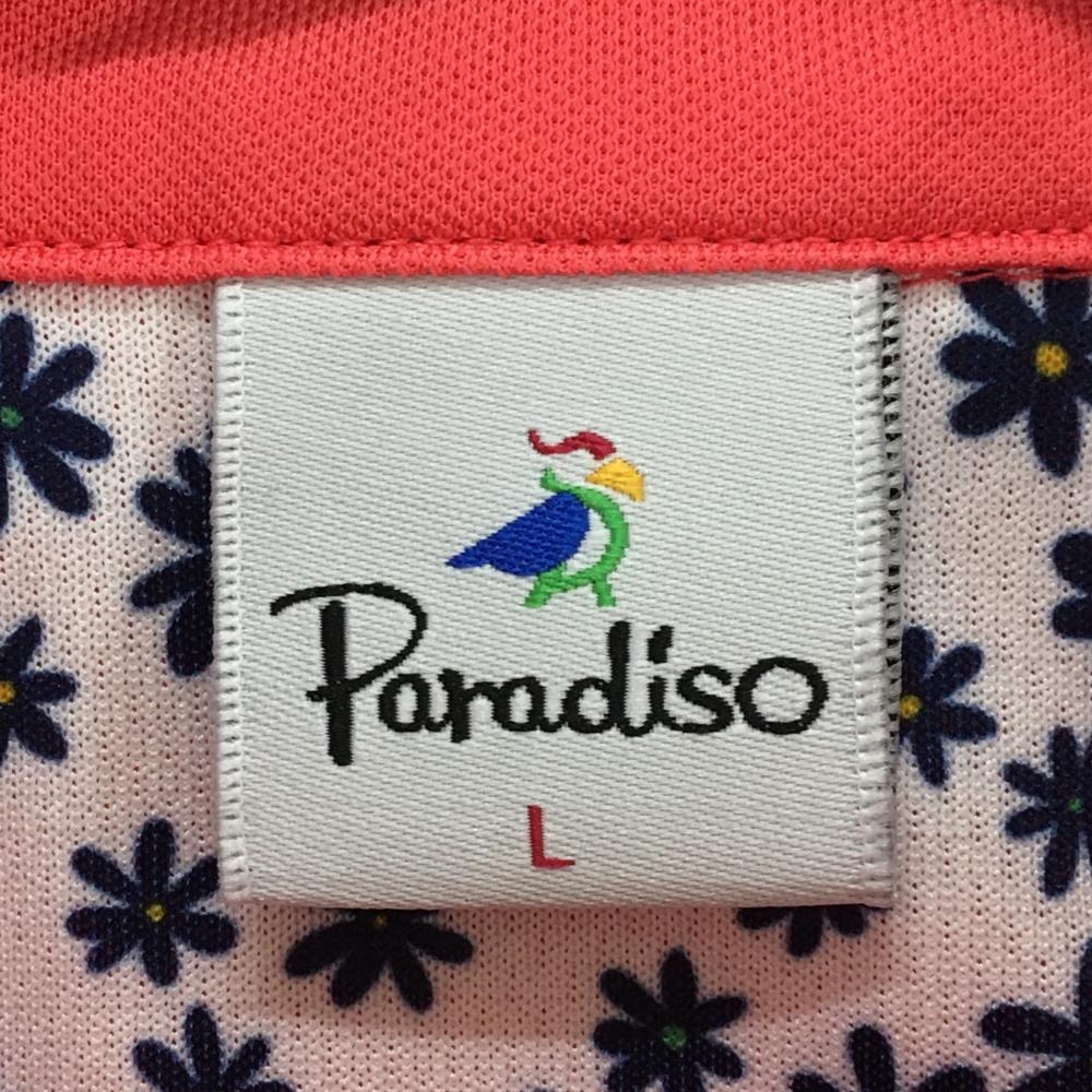 【超美品】パラディーゾ 長袖ポロシャツ ピンク×白 重ね着風 袖一部メッシュ レディース L ゴルフウェア Paradiso