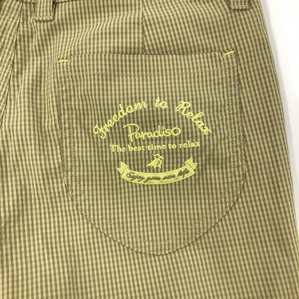 【超美品】パラディーゾ 七分丈パンツ ベージュ×ブラウン チェック レディース M ゴルフウェア Paradiso