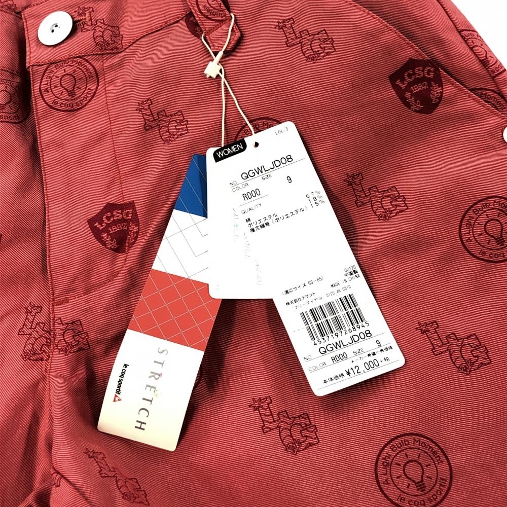 【新品】ルコックゴルフ パンツ レッド 総柄 ストレッチ レディース 9 ゴルフウェア le coq sportif
