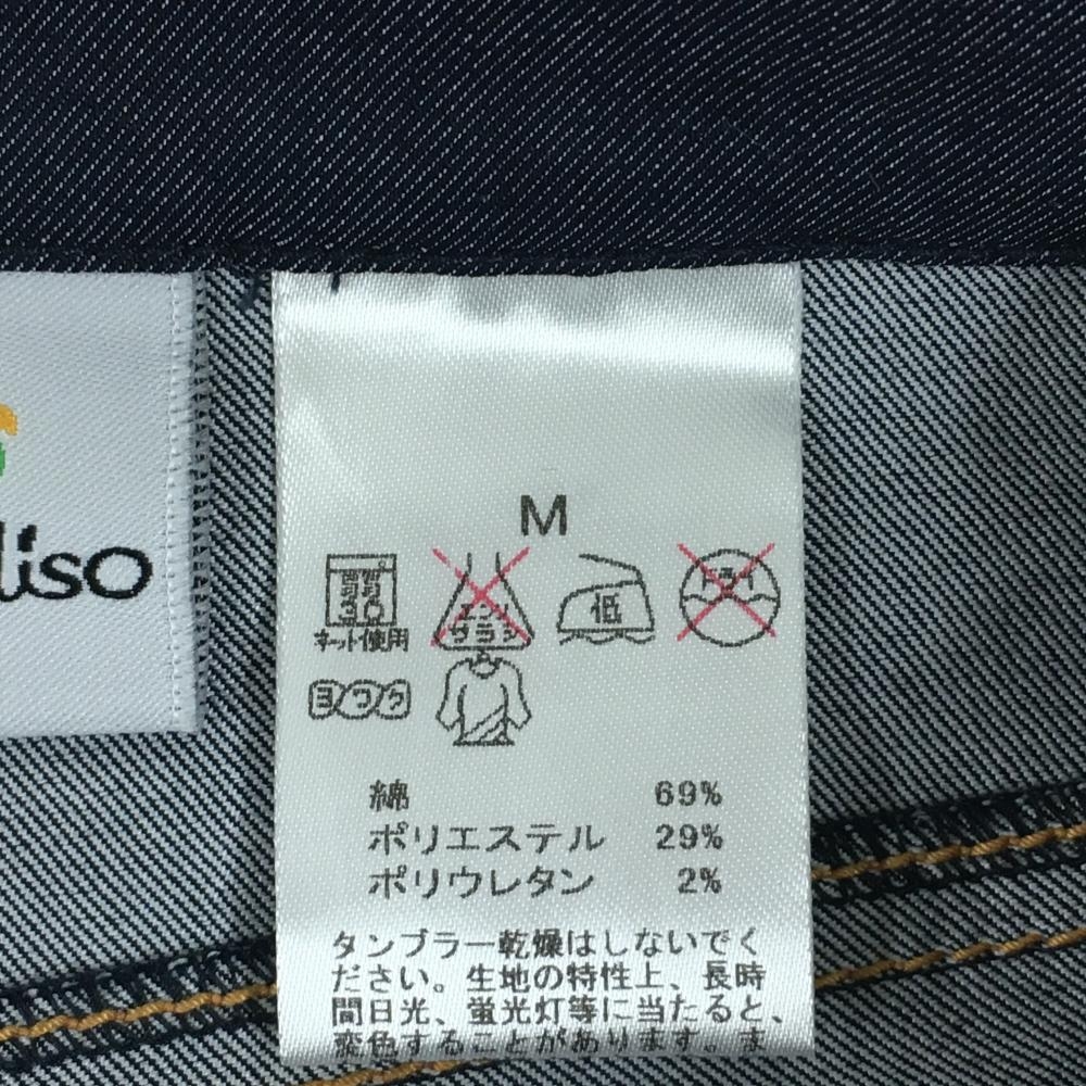 【超美品】パラディーゾ パンツ ネイビー デニム風 ロゴ刺しゅう レディース M ゴルフウェア Paradiso