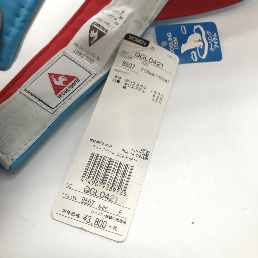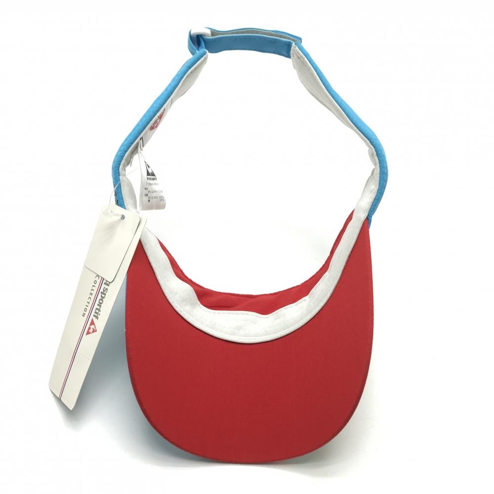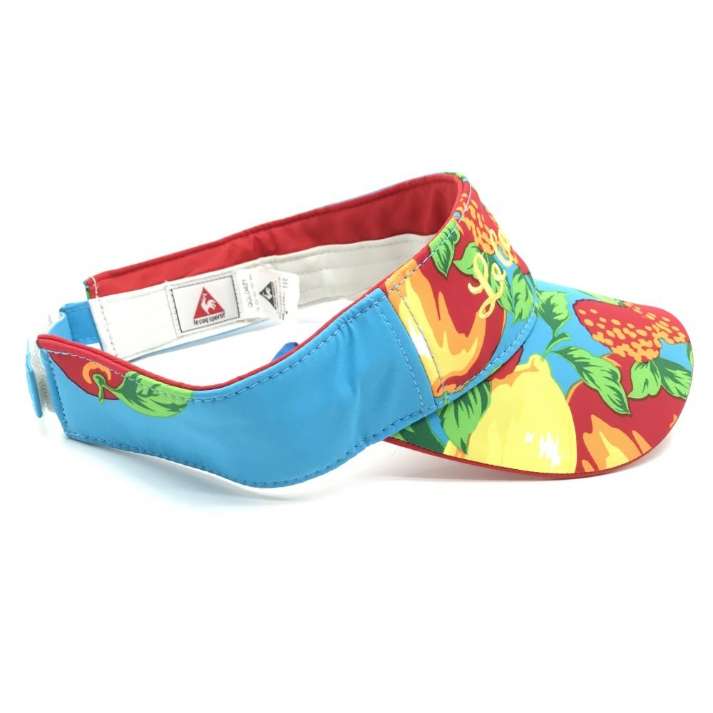 【新品】ルコック サンバイザー ライトブルー×レッド 総柄 F(55㎝~57㎝) ゴルフウェア le coq sportif