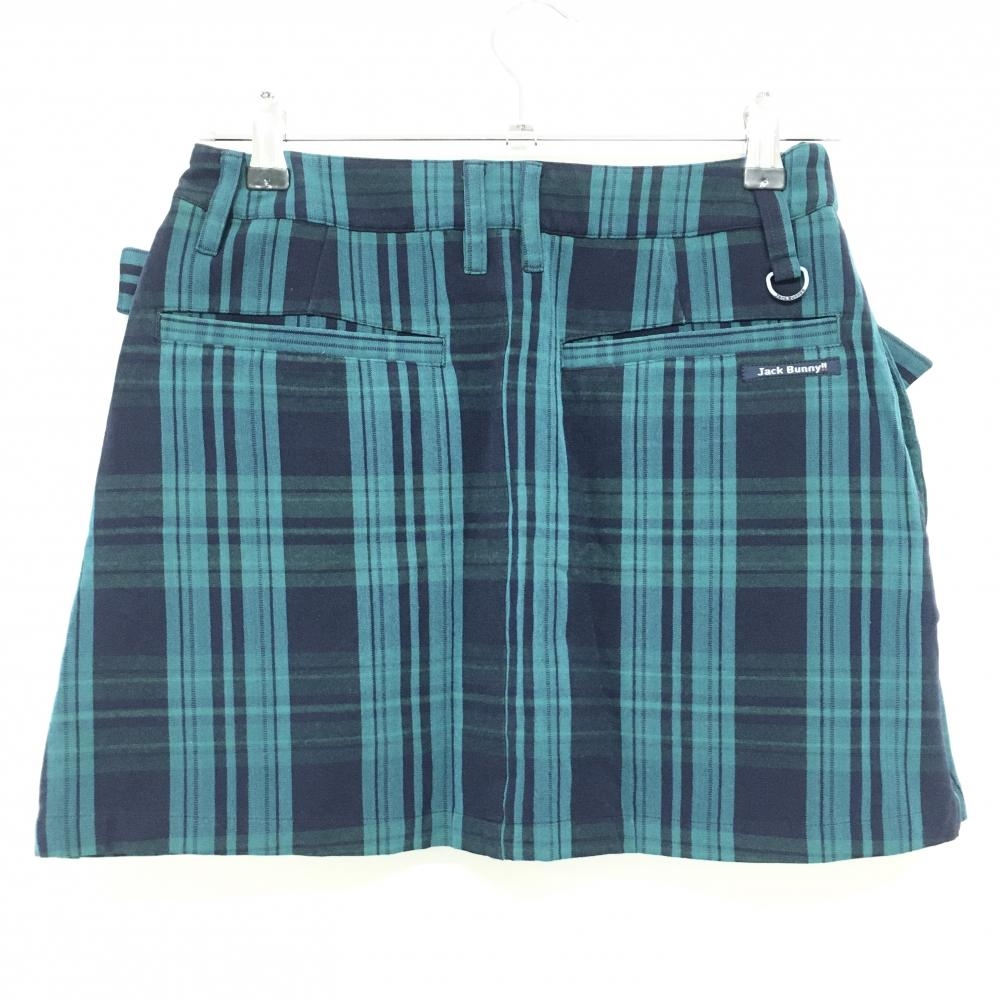 【超美品】ジャックバニー スカート グリーン系×ネイビー チェック ストレッチ レディース 1(M) ゴルフウェア サンプル品 Jack Bunny