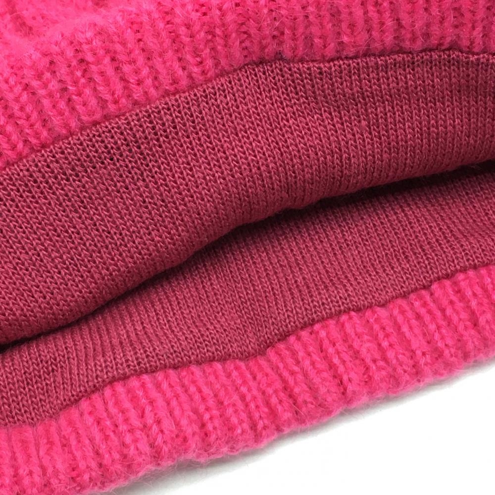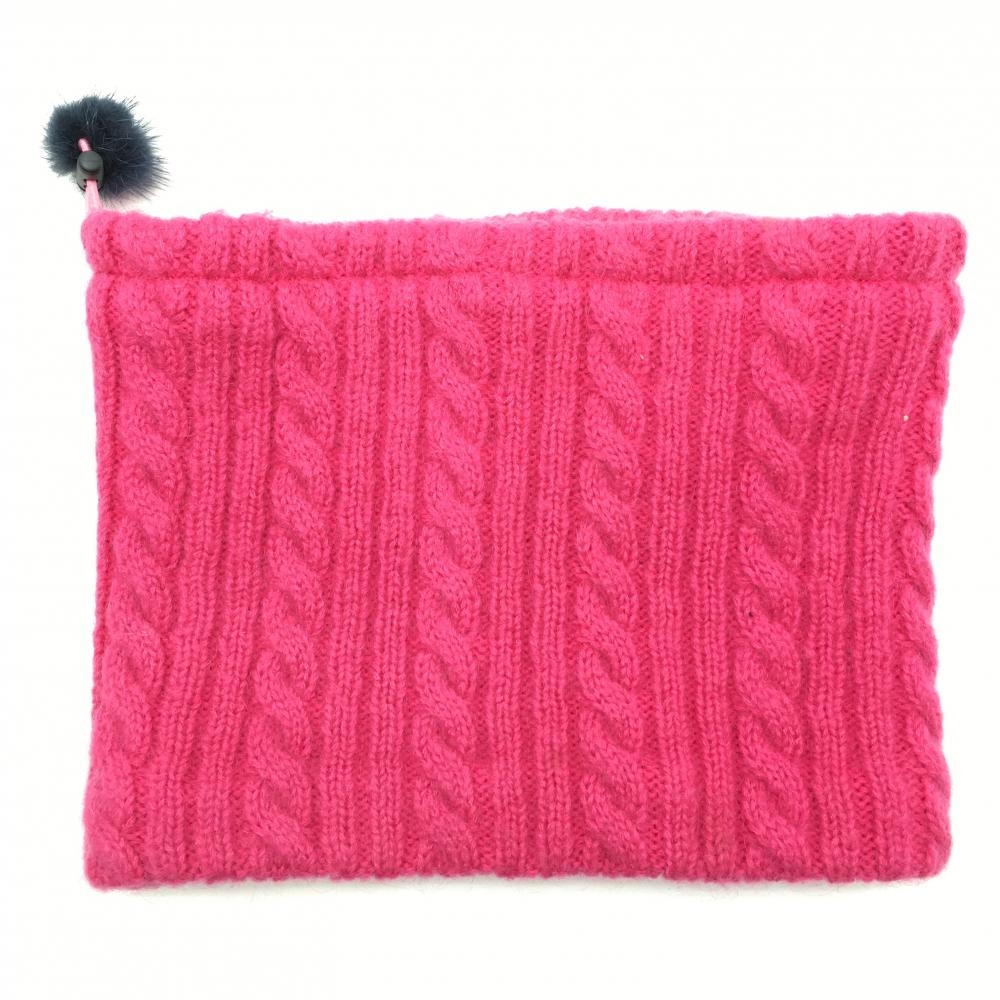 パーリーゲイツ ニットネックウォーマー ピンク×ネイビー ケーブル編み ボンボン付 FR ゴルフウェア PEARLY GATES