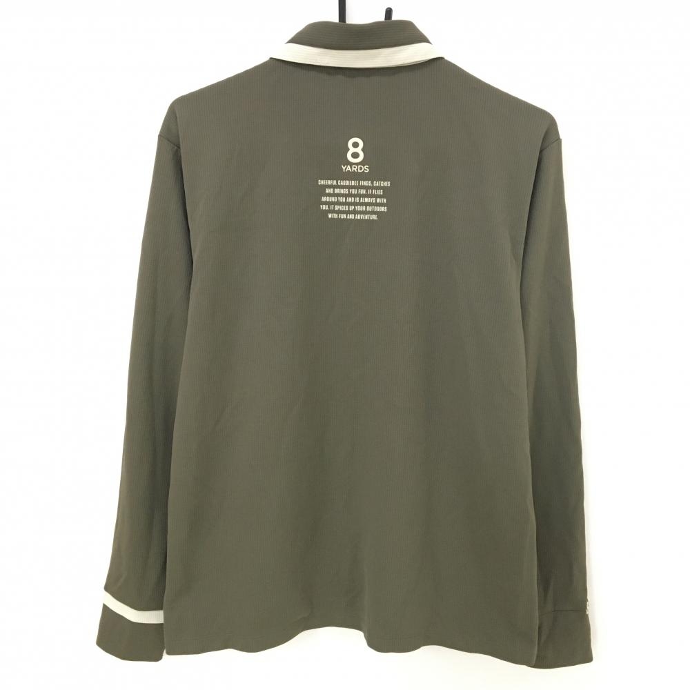 【超美品】ハチヤーズ 長袖ポロシャツ ブラウン×ライトベージュ 前立て下ロゴ刺しゅう メンズ L ゴルフウェア 8YARDS