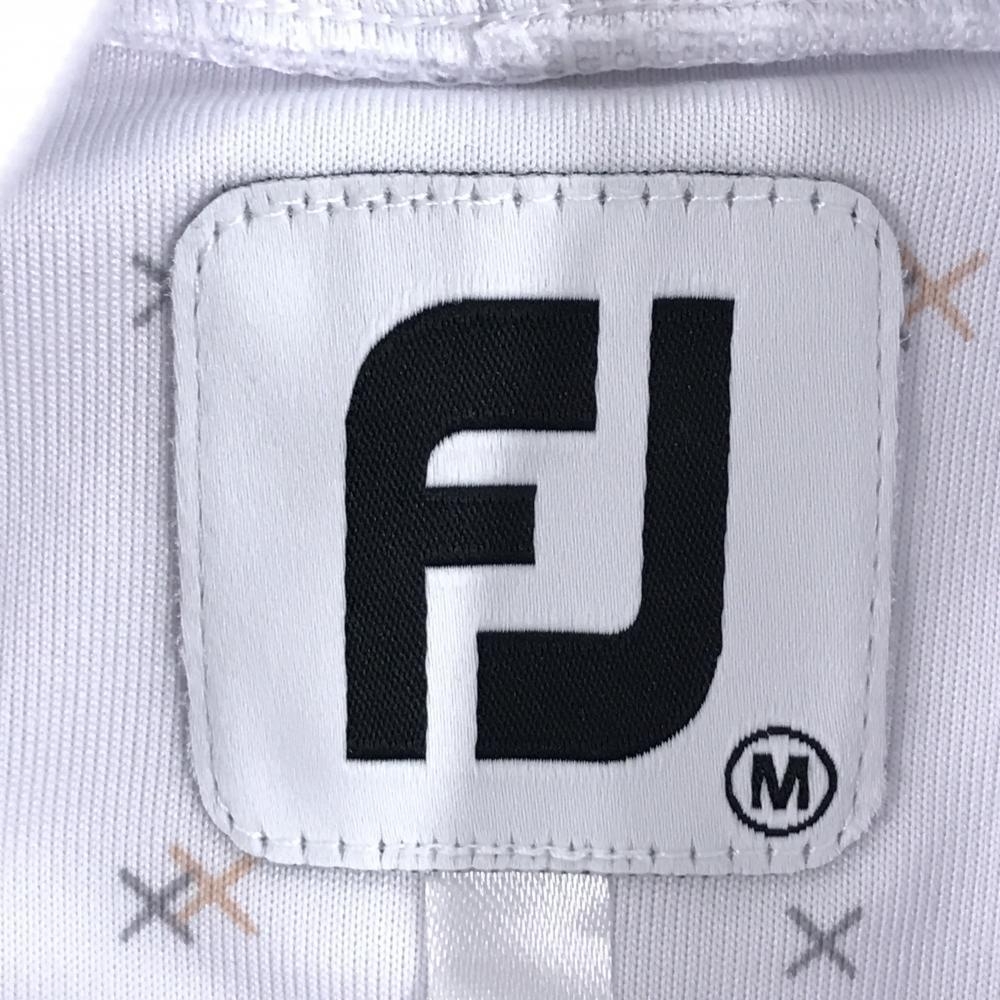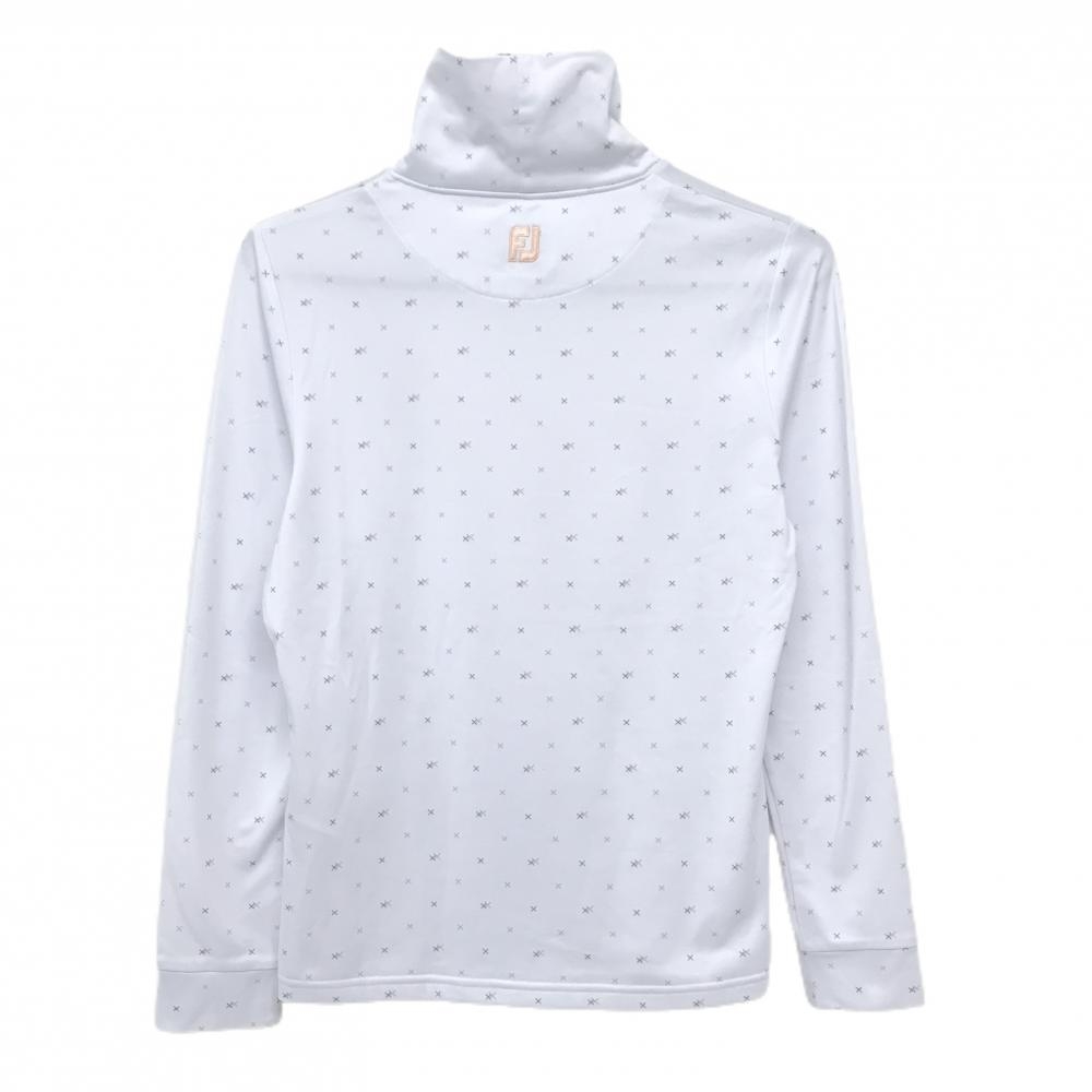 【超美品】フットジョイ 長袖タートルネックシャツ 白×オレンジ 総柄 ロゴ刺しゅう レディース M ゴルフウェア FootJoy