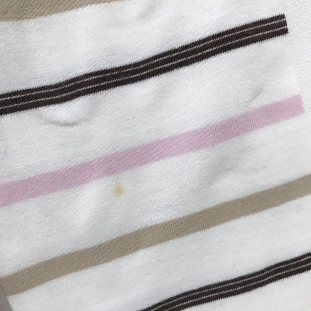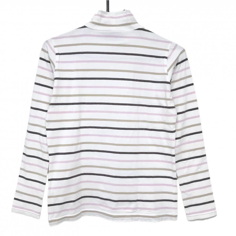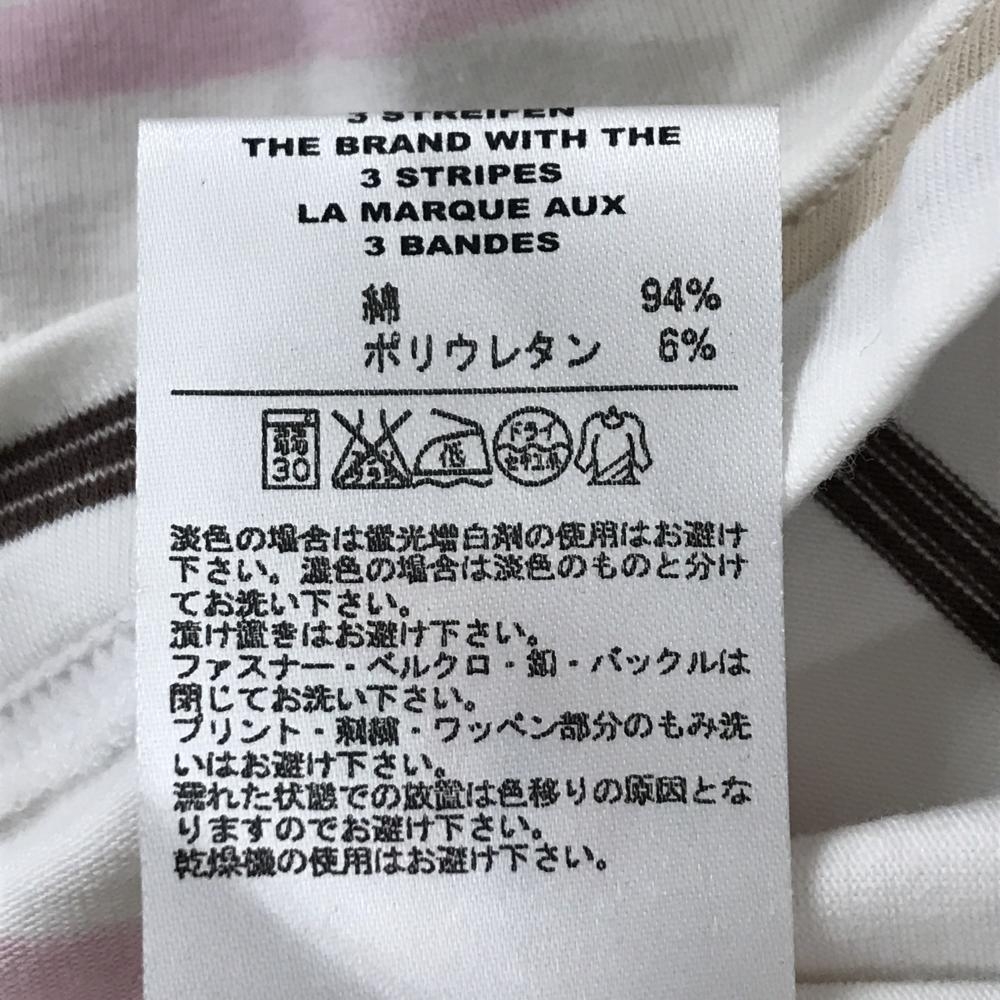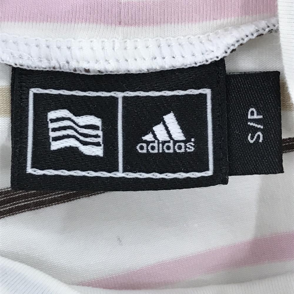 【美品】アディダス 長袖ハイネックシャツ 白×ピンク×ブラウン ボーダー 袖口ロゴ レディース S/P ゴルフウェア adidas