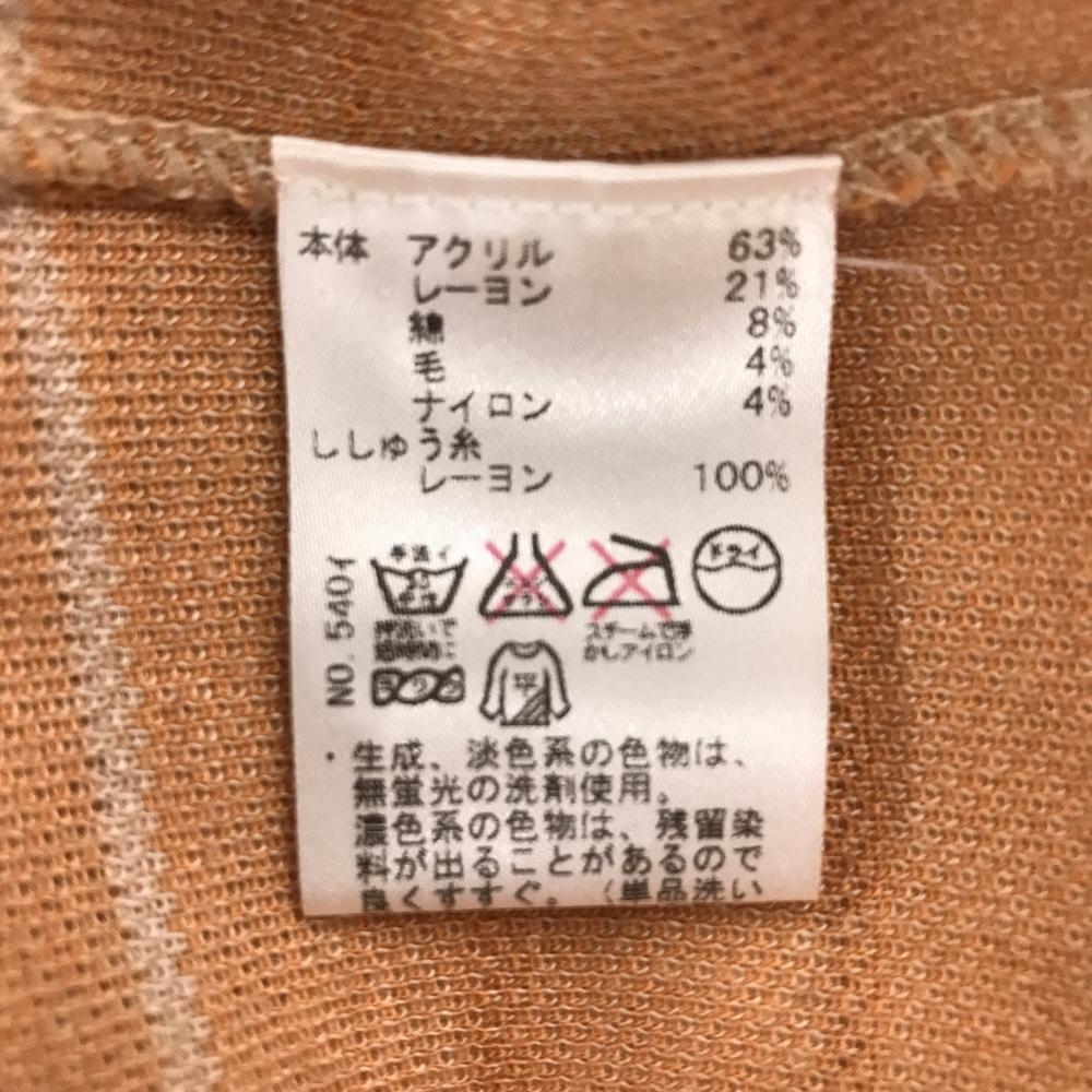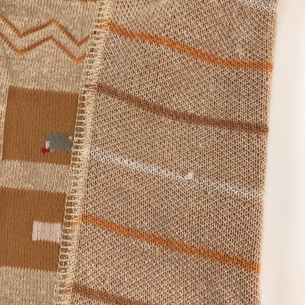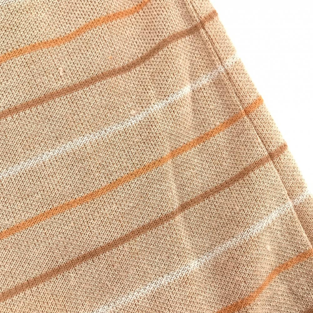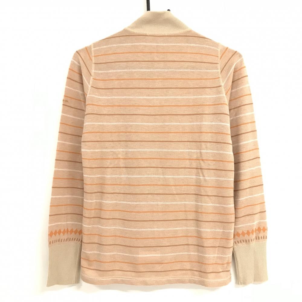 ヒールクリーク ハイネックセーター ベージュ×オレンジブラウン 前身頃総柄 袖・背面ボーダー レディース 40(M) ゴルフウェア Heal Creek