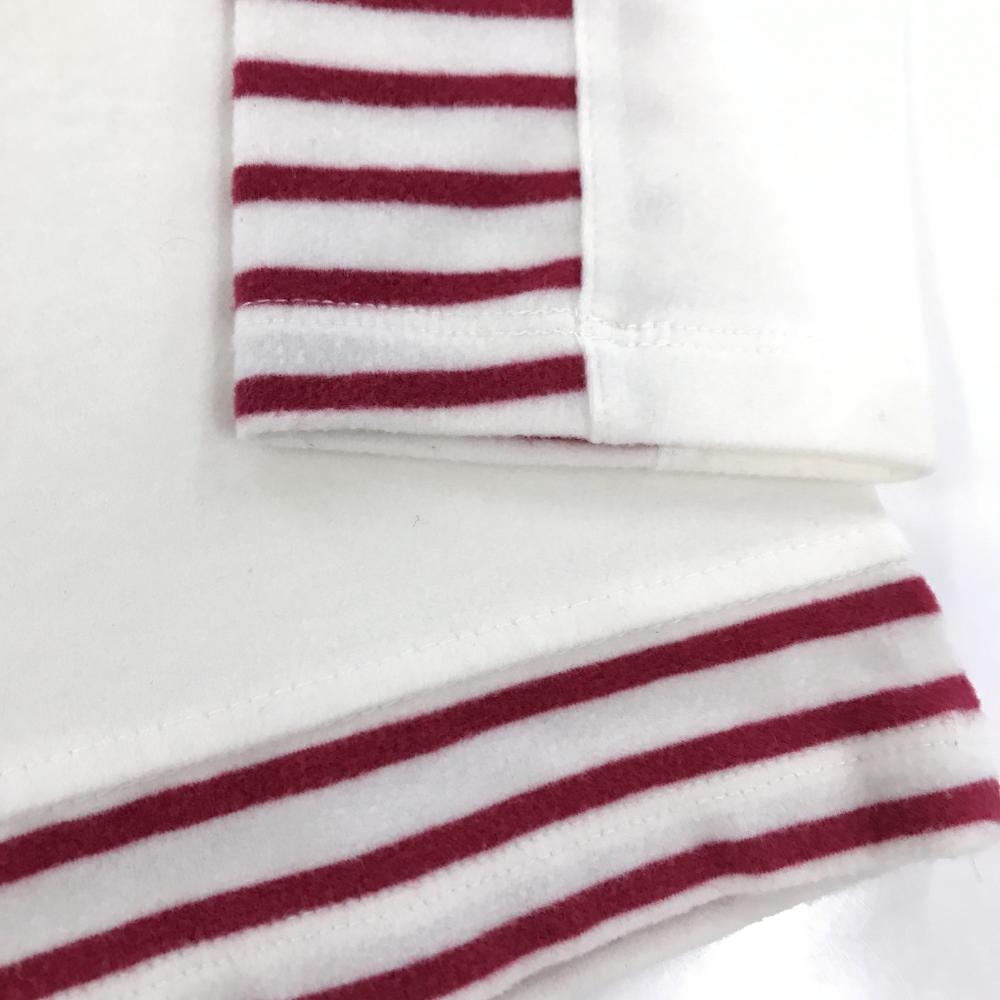 【美品】ピッコーネクラブ 長袖ハイネックシャツ 白×レッド ネック・袖口・裾ボーダー ワッペン レディース I(M) ゴルフウェア PICONE