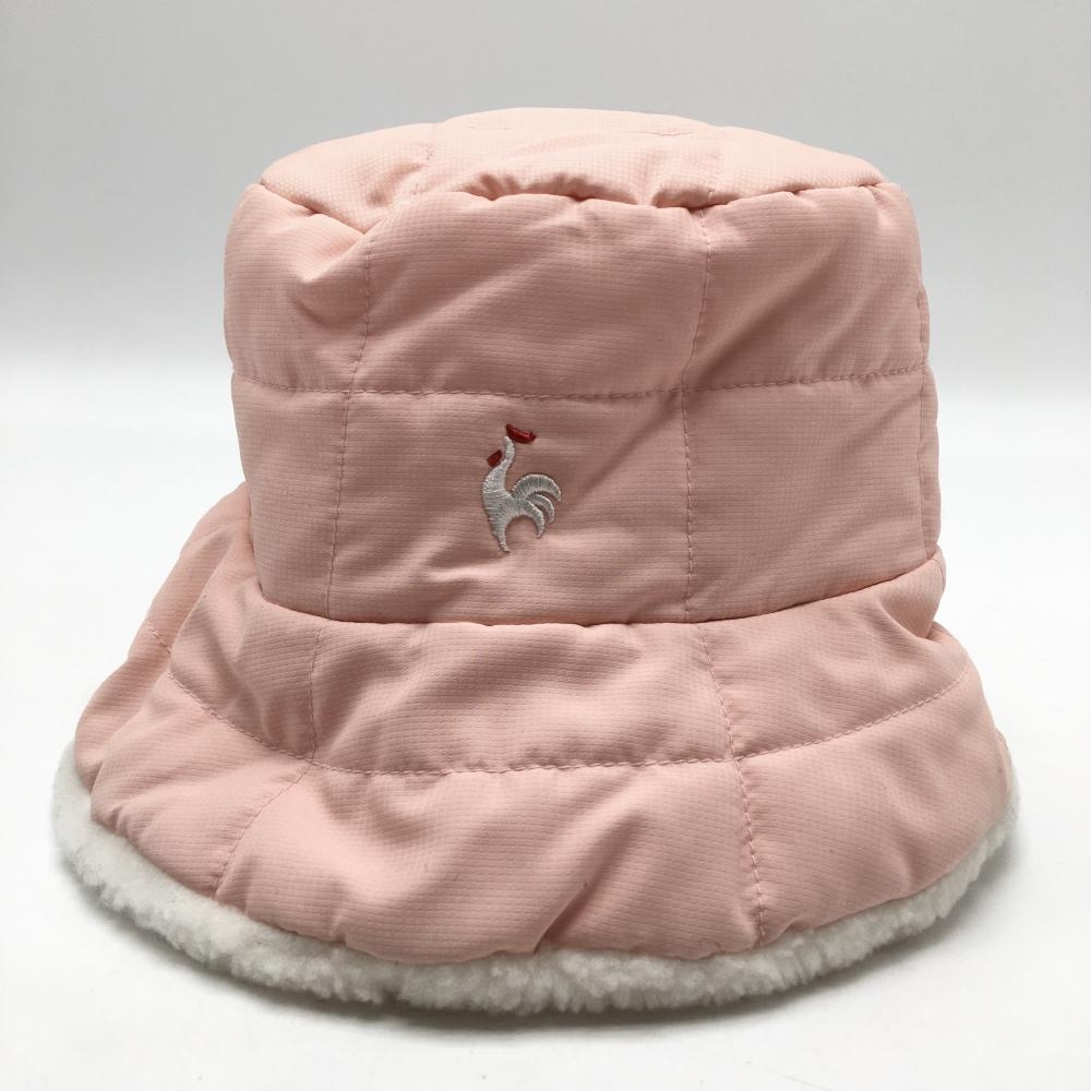 【超美品】ルコック ハット ライトピンク ロゴ刺しゅう 裏ボア FREE ゴルフウェア le coq sportif