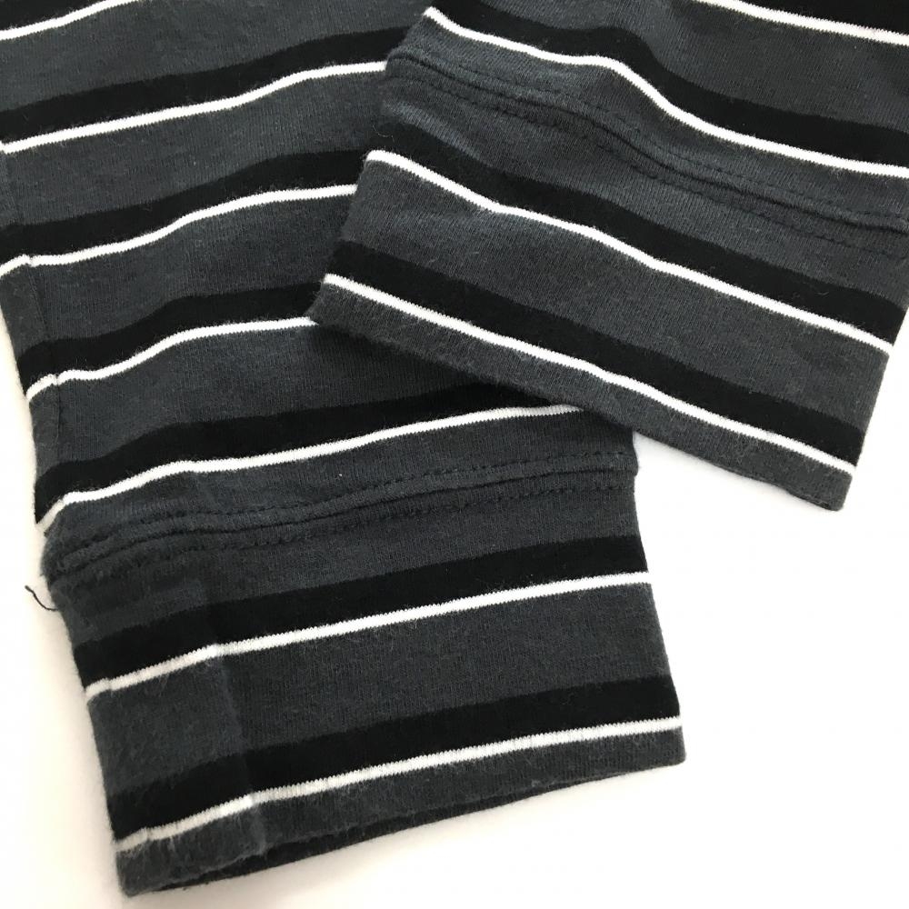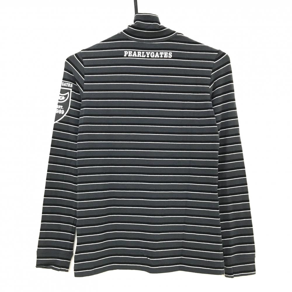 【美品】パーリーゲイツ 長袖ハイネックシャツ グレー×白 ボーダー 微起毛素材 ストレッチ レディース 0(S) ゴルフウェア PEARLY GATES