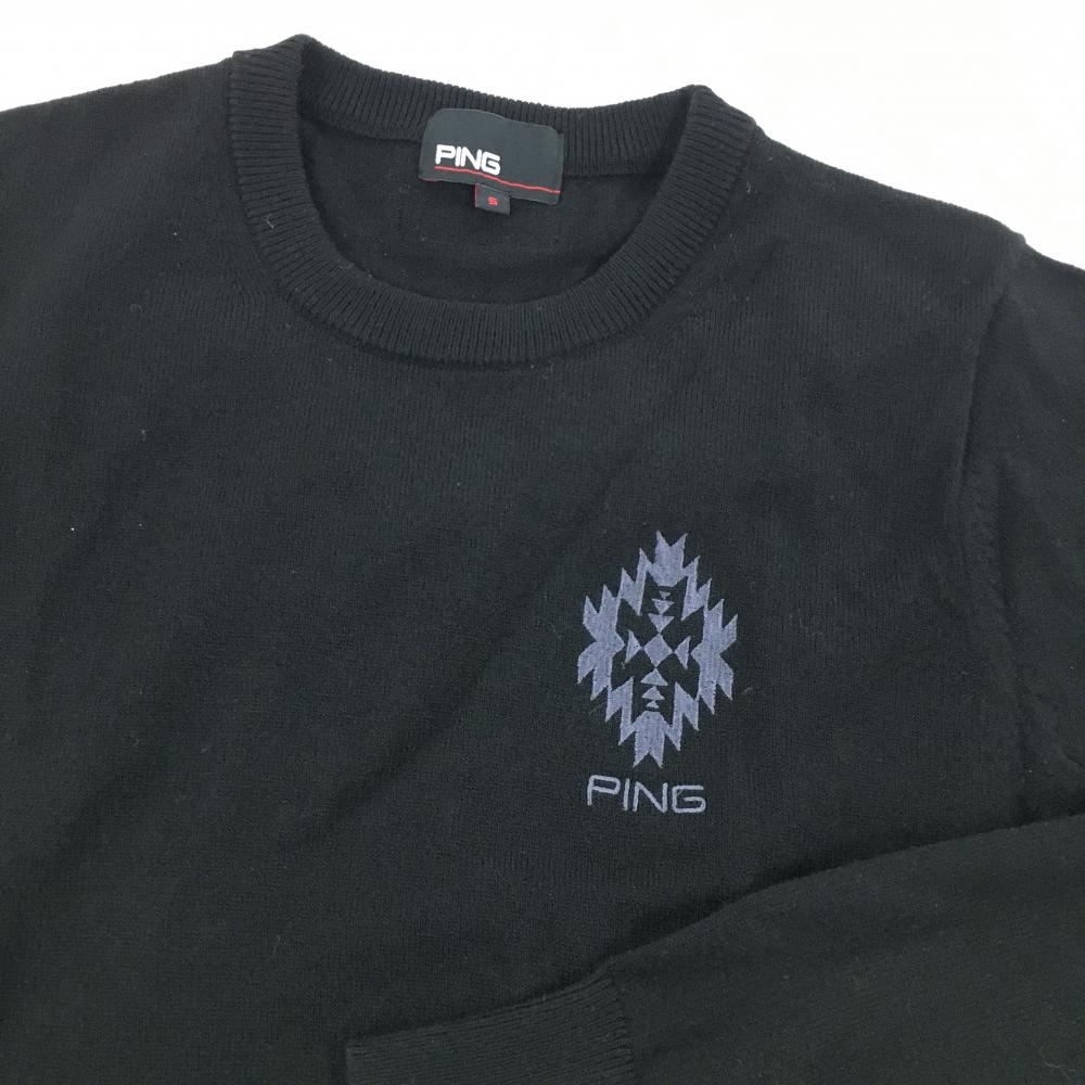 【超美品】ピン セーター 黒 ロゴ ニット レディース S ゴルフウェア PING