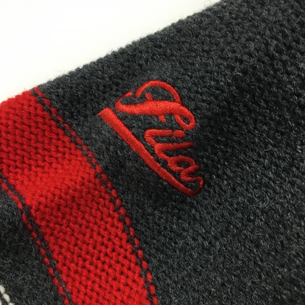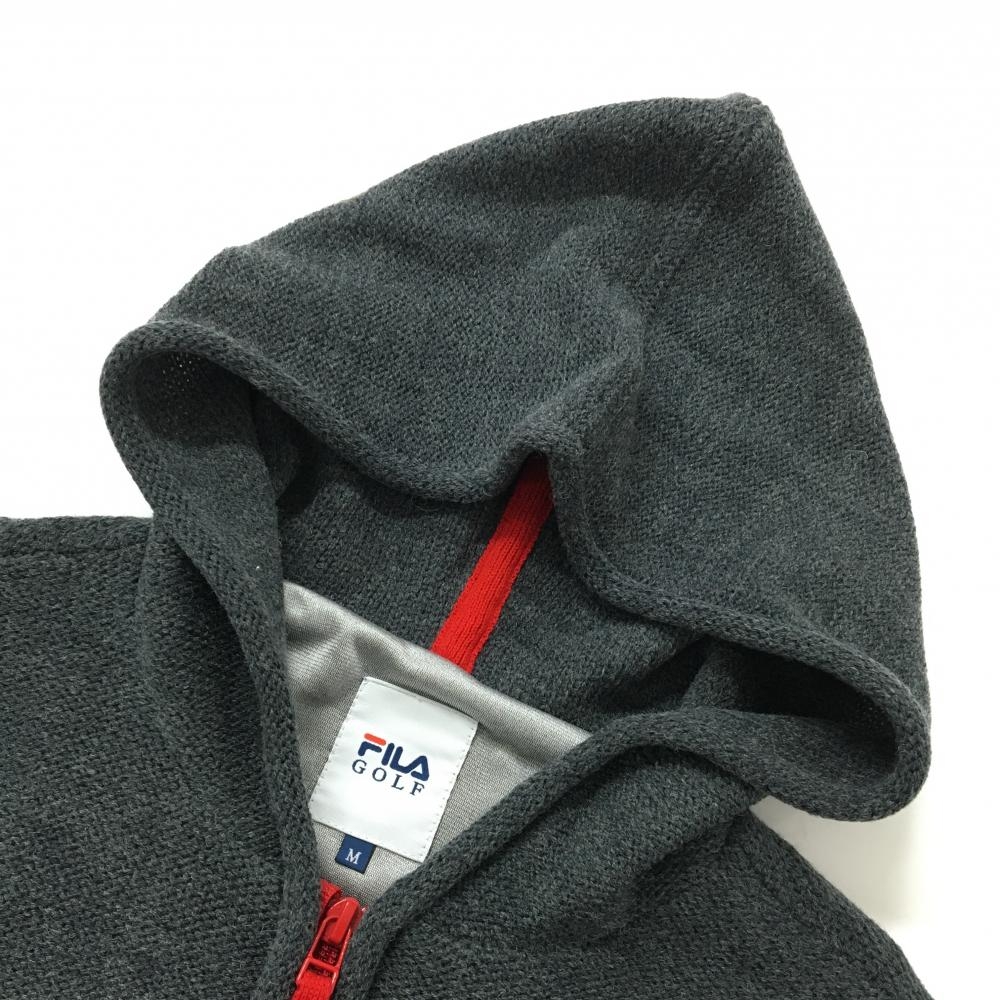 【超美品】フィラゴルフ ニットジップパーカー グレー×レッド フロント・袖ライン ウール混 レディース M ゴルフウェア FILA GOLF
