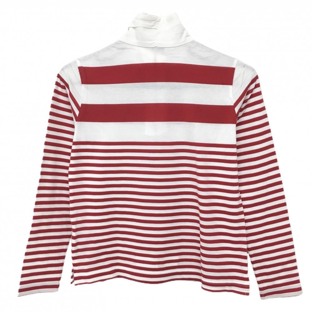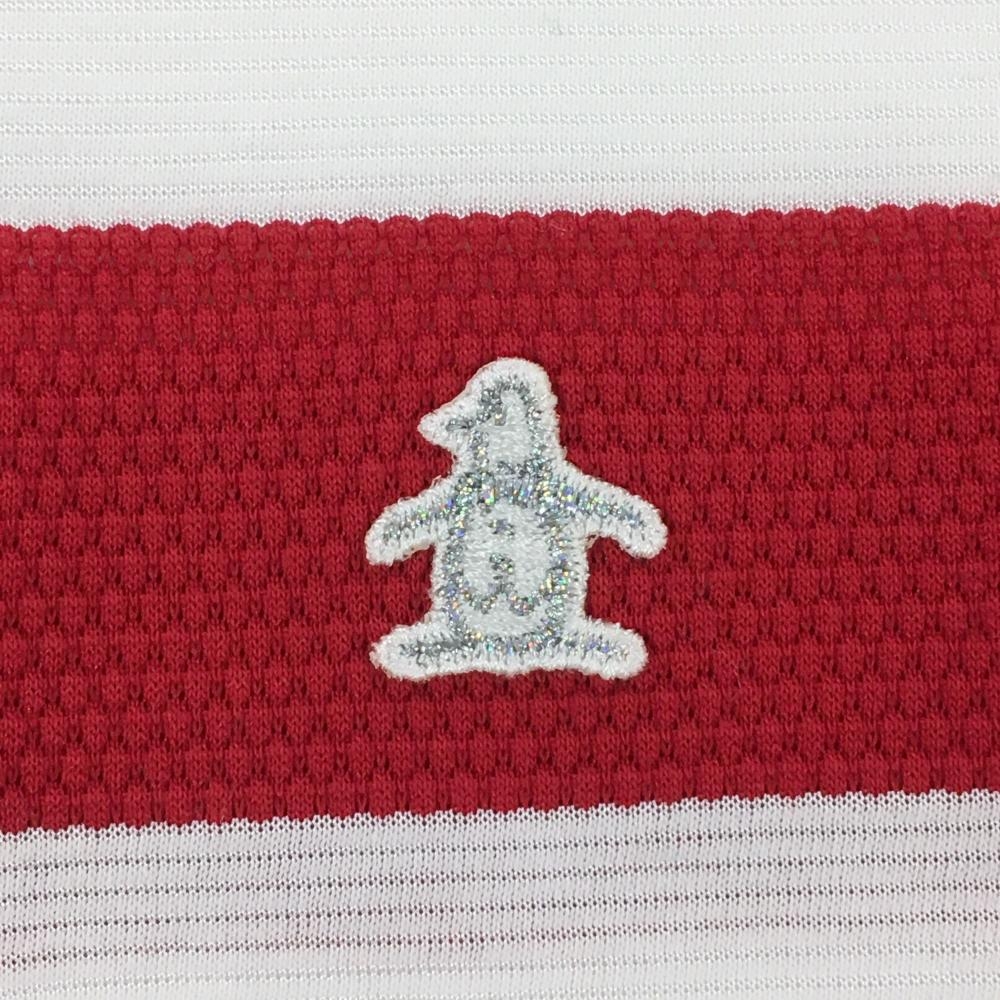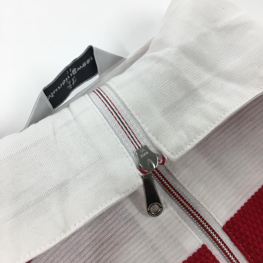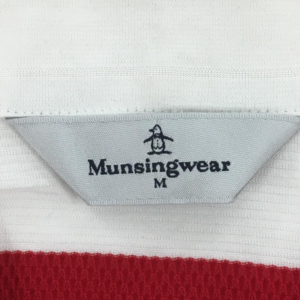【美品】マンシングウェア 長袖ハイネックシャツ 白×レッド ボーダー ハーフジップ ワッペン レディース M ゴルフウェア Munsingwear