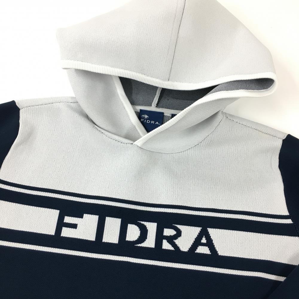 【超美品】フィドラ フード付長袖ニットワンピース ネイビー×白 フロントロゴ ウエストゴム レディース L/G ゴルフウェア FIDRA
