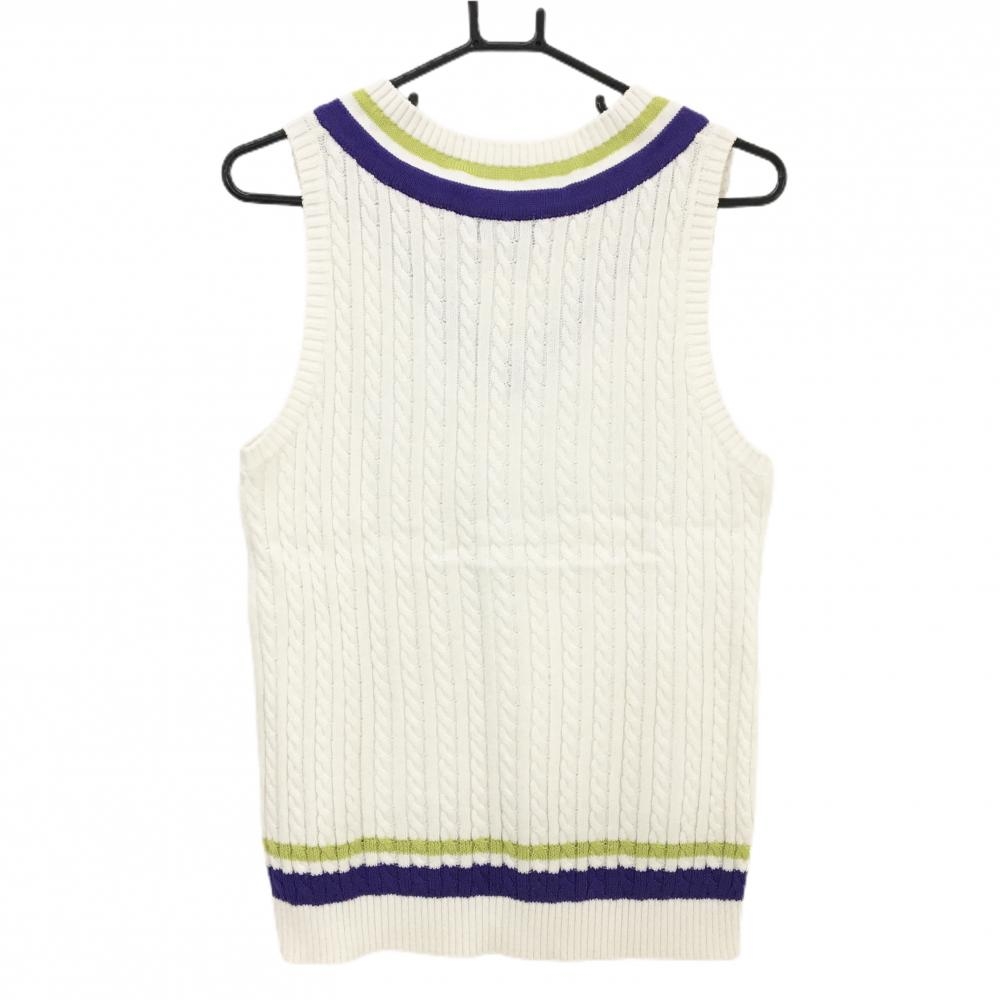 パーリーゲイツ ニットベスト 白×パープル ケーブル編み コットン混 レディース 2(L) ゴルフウェア PEARLY GATES