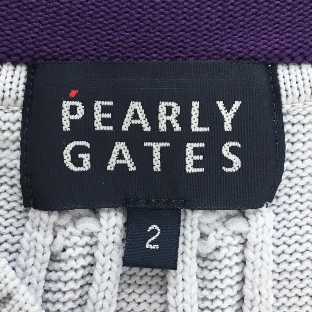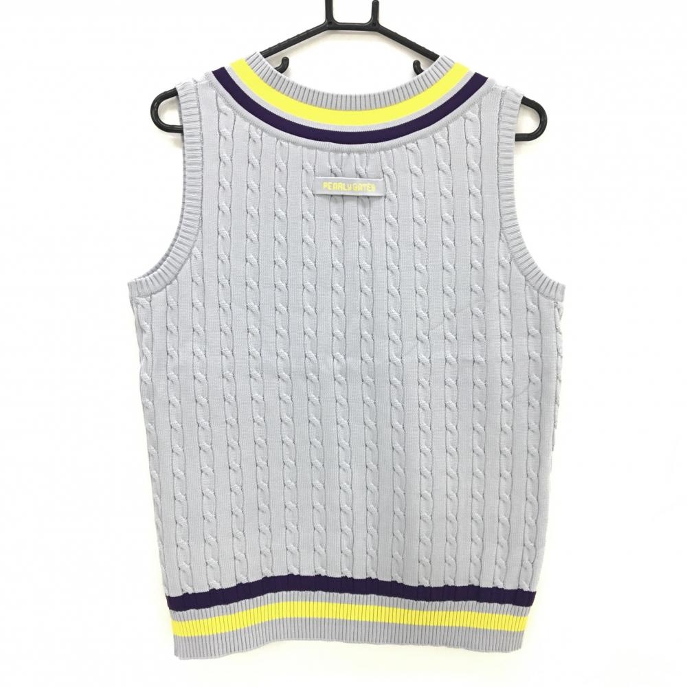 【超美品】パーリーゲイツ ニットベスト グレー×イエロー ケーブル編み ワッペン レディース 2(L) ゴルフウェア PEARLY GATES