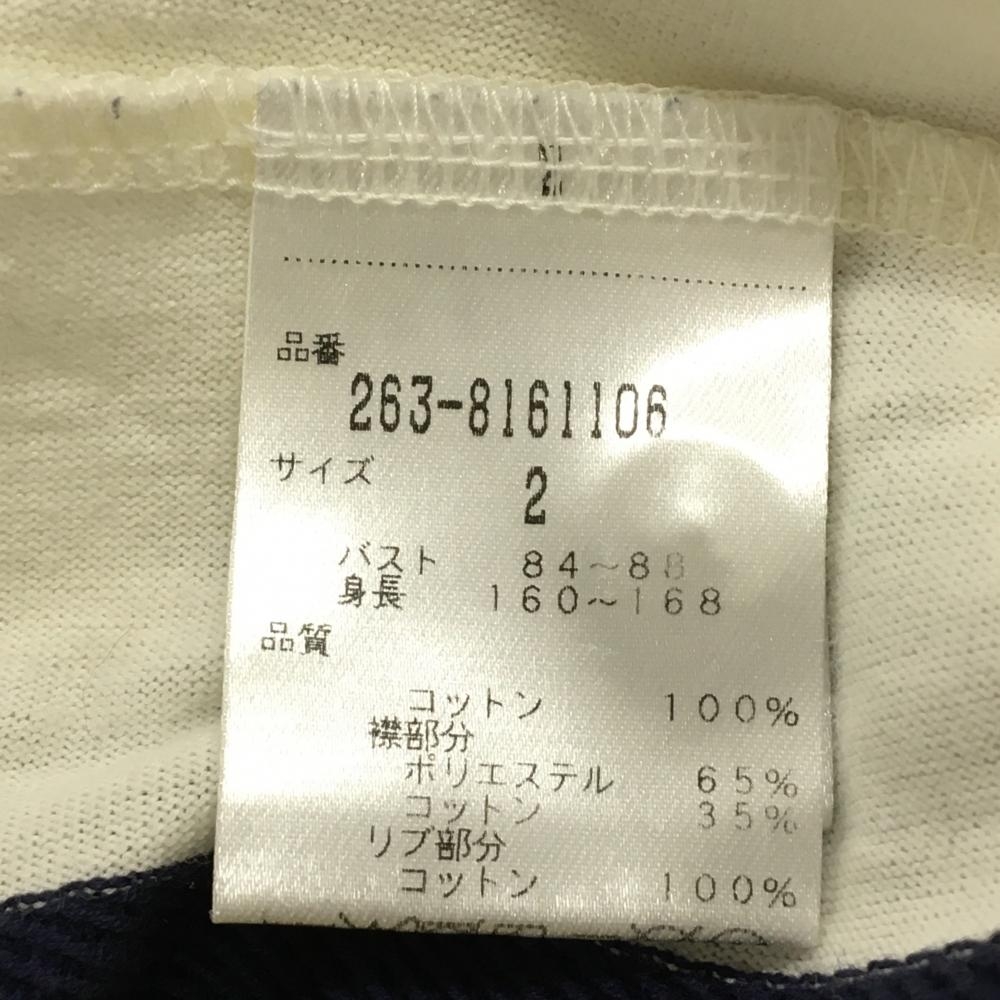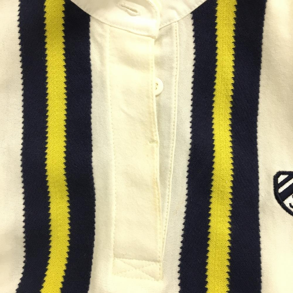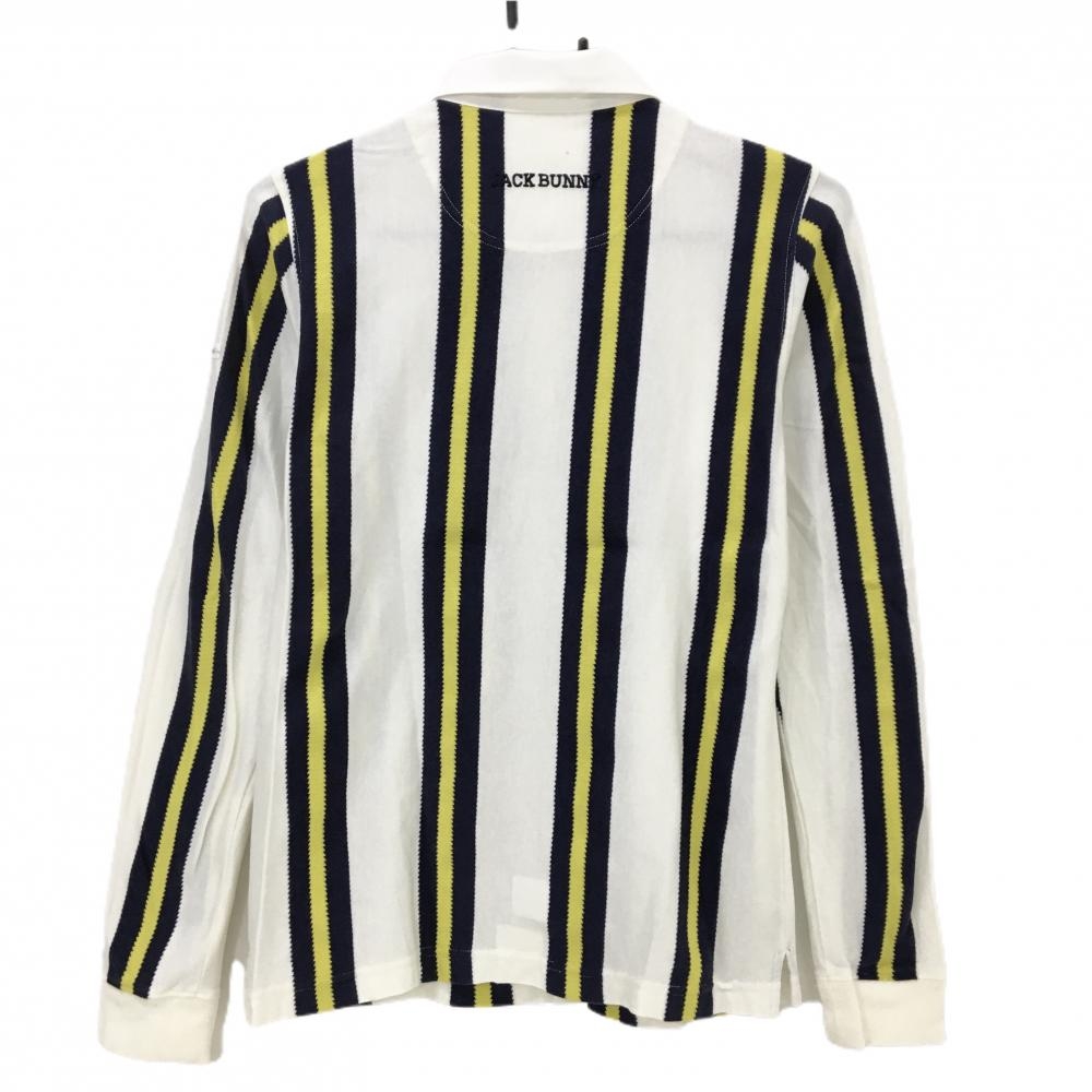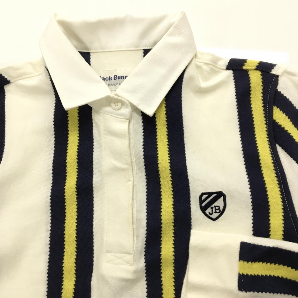 ジャックバニー 長袖ポロシャツ 白×ネイビー×イエロー ストライプ ワッペン レディース 2(L) ゴルフウェア Jack Bunny