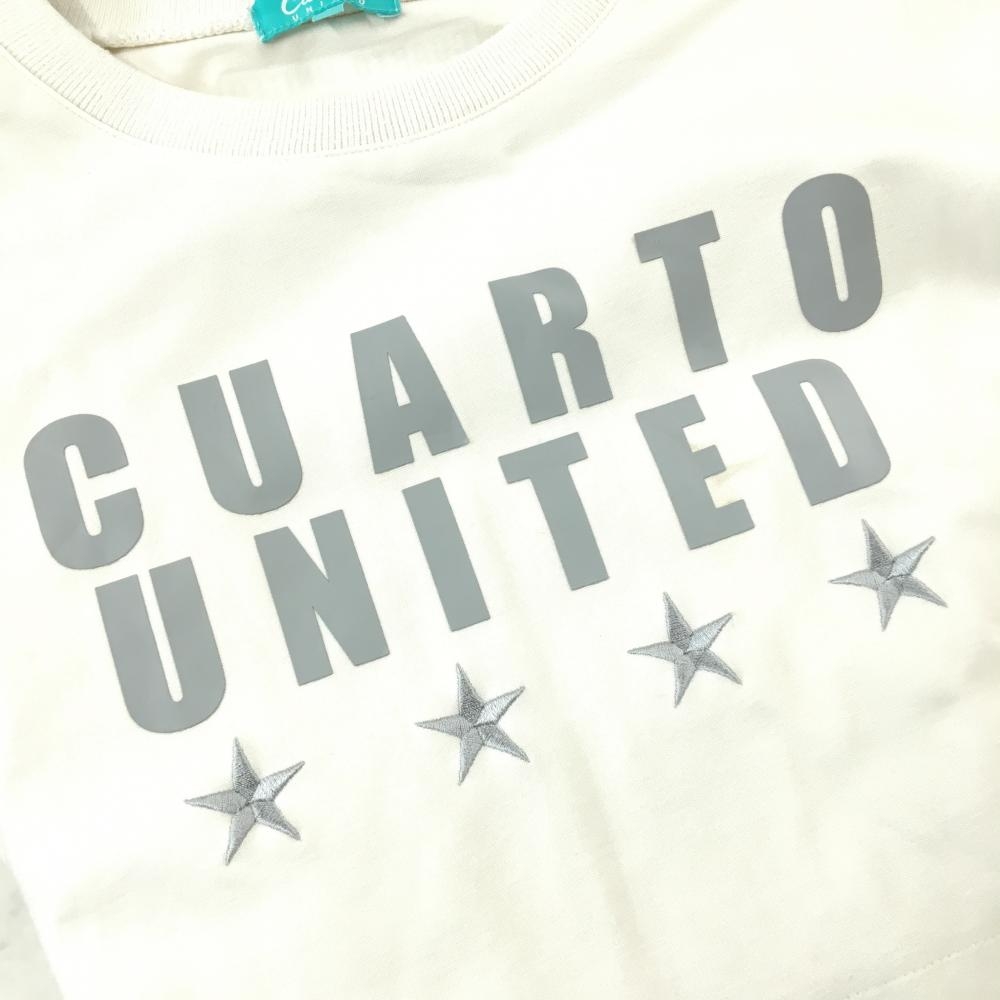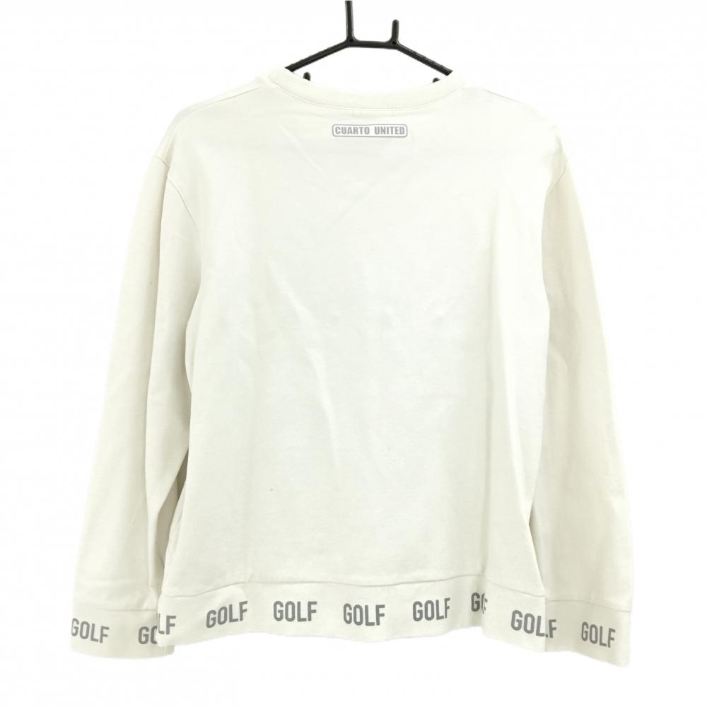 クアルトユナイテッド トレーナー 白×グレー 胸元ロゴ 星 薄手 ジップポケット レディース L ゴルフウェア CUARTO UNITED