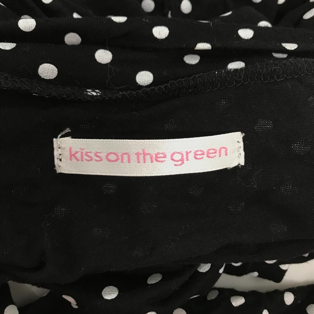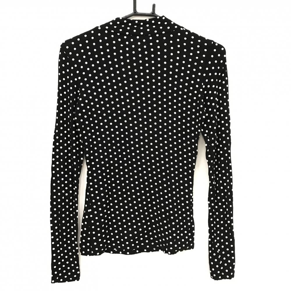 【美品】キスオンザグリーン 長袖ハイネックシャツ 黒×白 ドット柄 裾ロゴ レディース ゴルフウェア kiss on the green