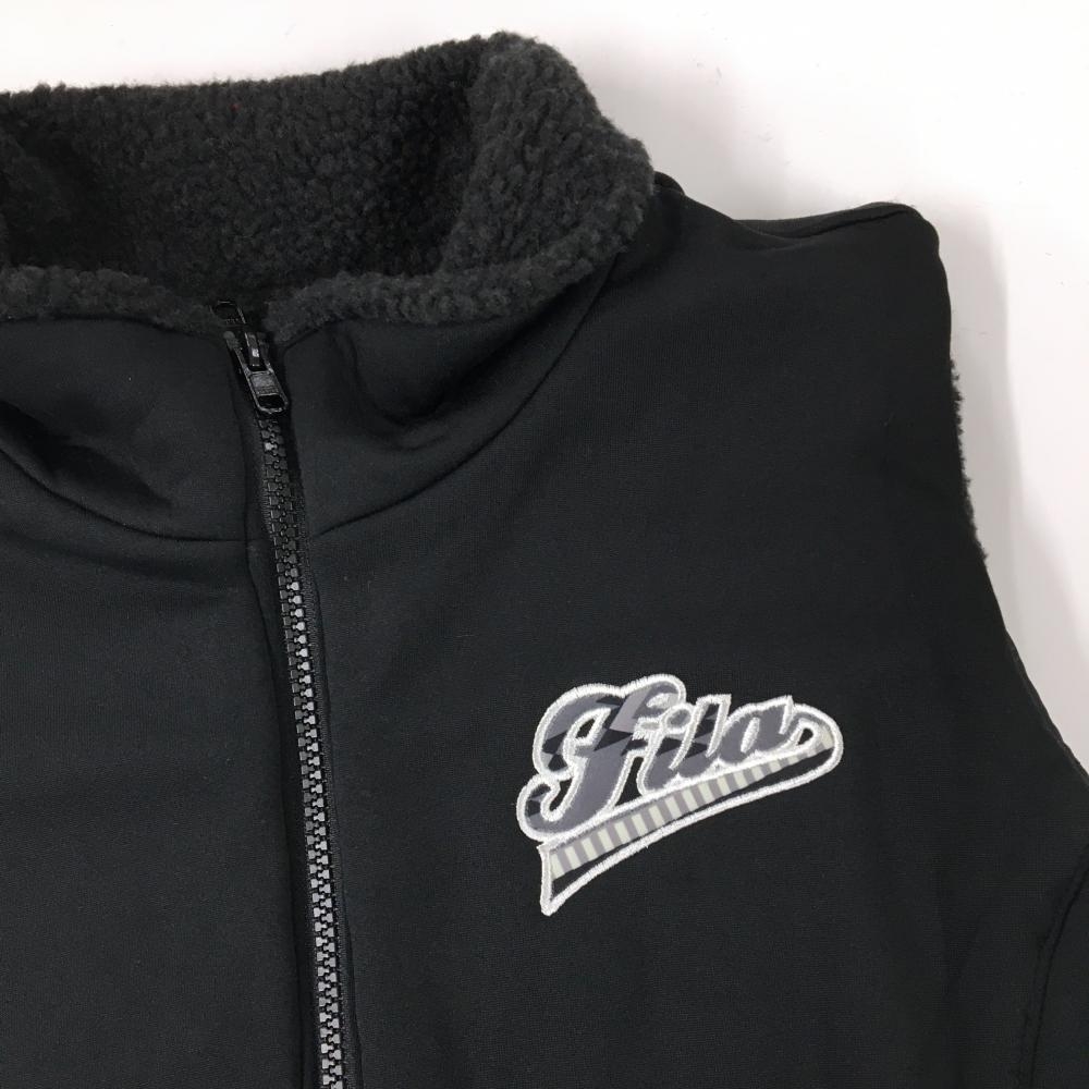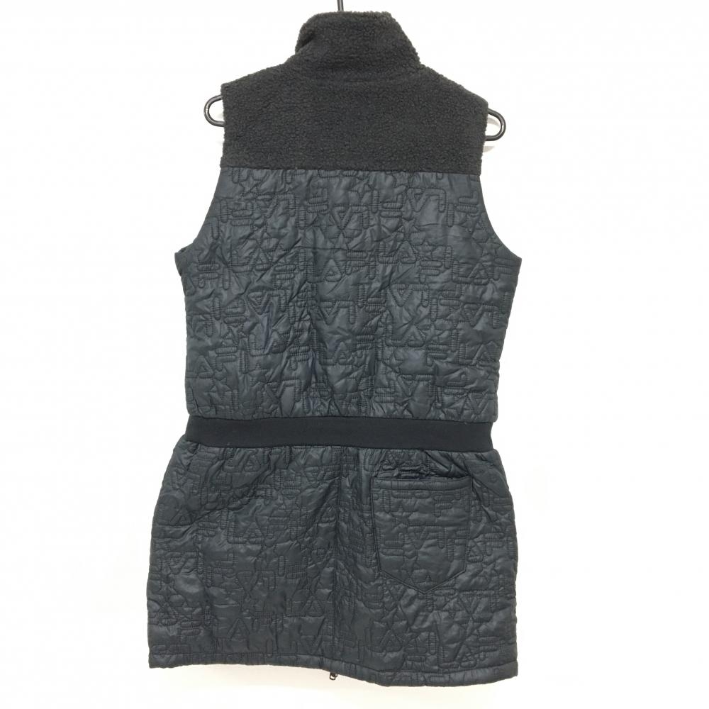 【超美品】フィラゴルフ 中綿ノースリーブワンピース ダークネイビー×ダークグレー 一部ボア レディース LL ゴルフウェア FILA GOLF