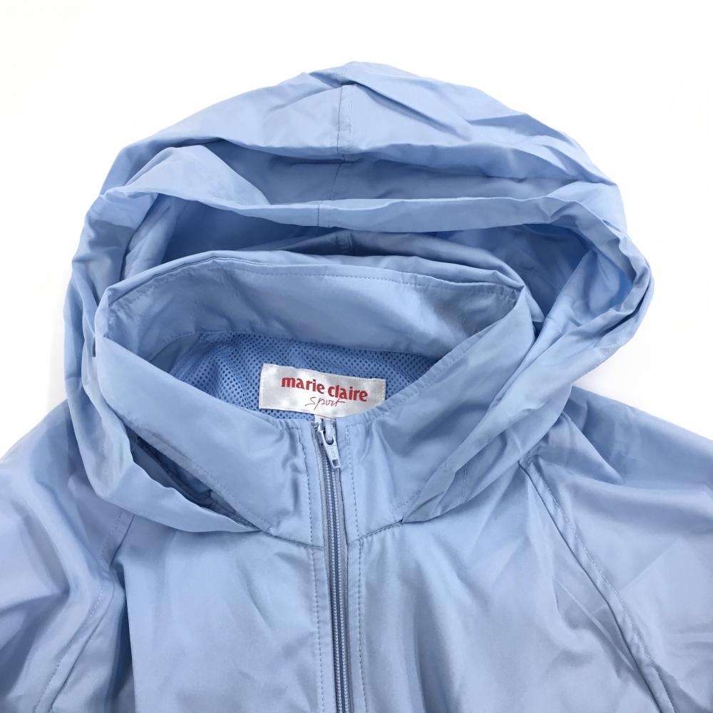 【美品】マリクレールスポール フード付きジャケット ライトブルー×白 フード収納可 レディース L ゴルフウェア marie claire