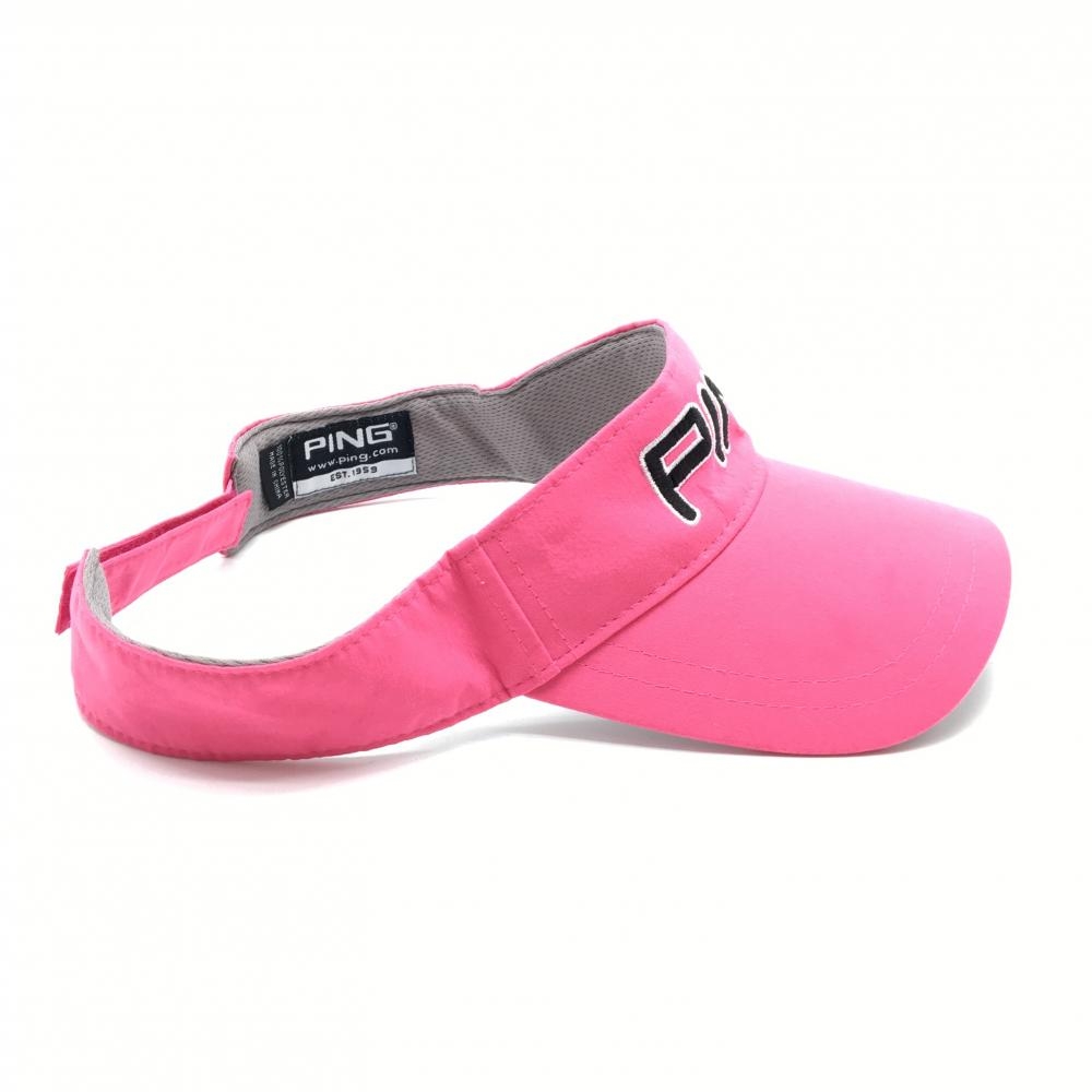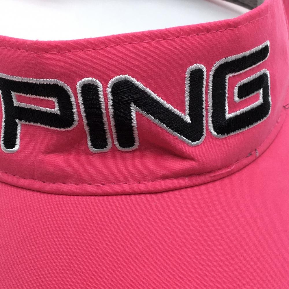 【美品】ピン サンバイザー ピンク×黒 ロゴ刺しゅう ゴルフウェア PING