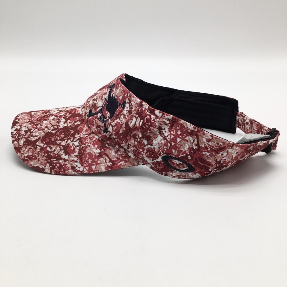 【美品】オークリー サンバイザー 白×レッド 花柄 ロゴ刺しゅう ゴルフウェア Oakley