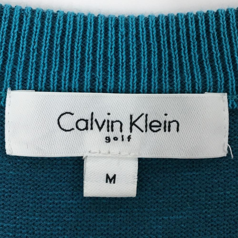 【超美品】カルバンクラインゴルフ ニットベスト グリーンブルー 総柄 胸ロゴ Vネック レディース M ゴルフウェア Calvin Klein