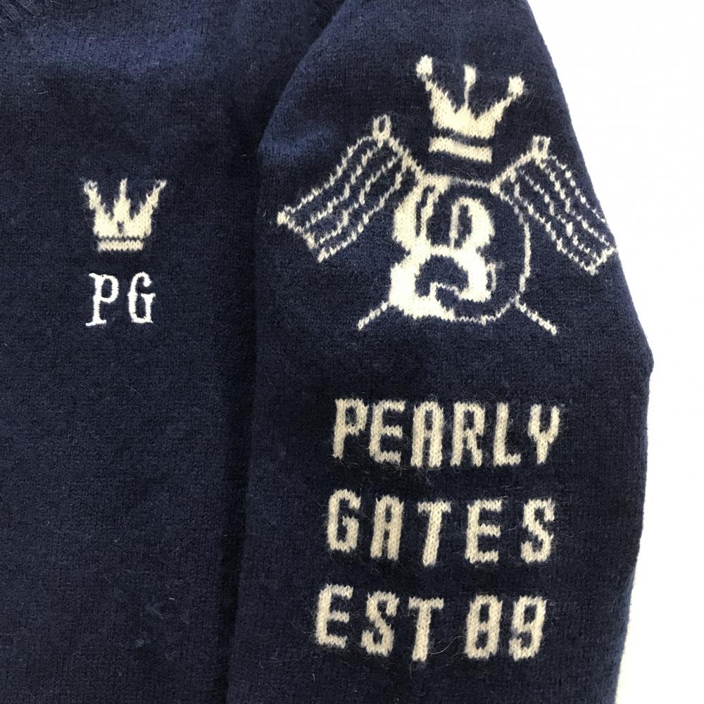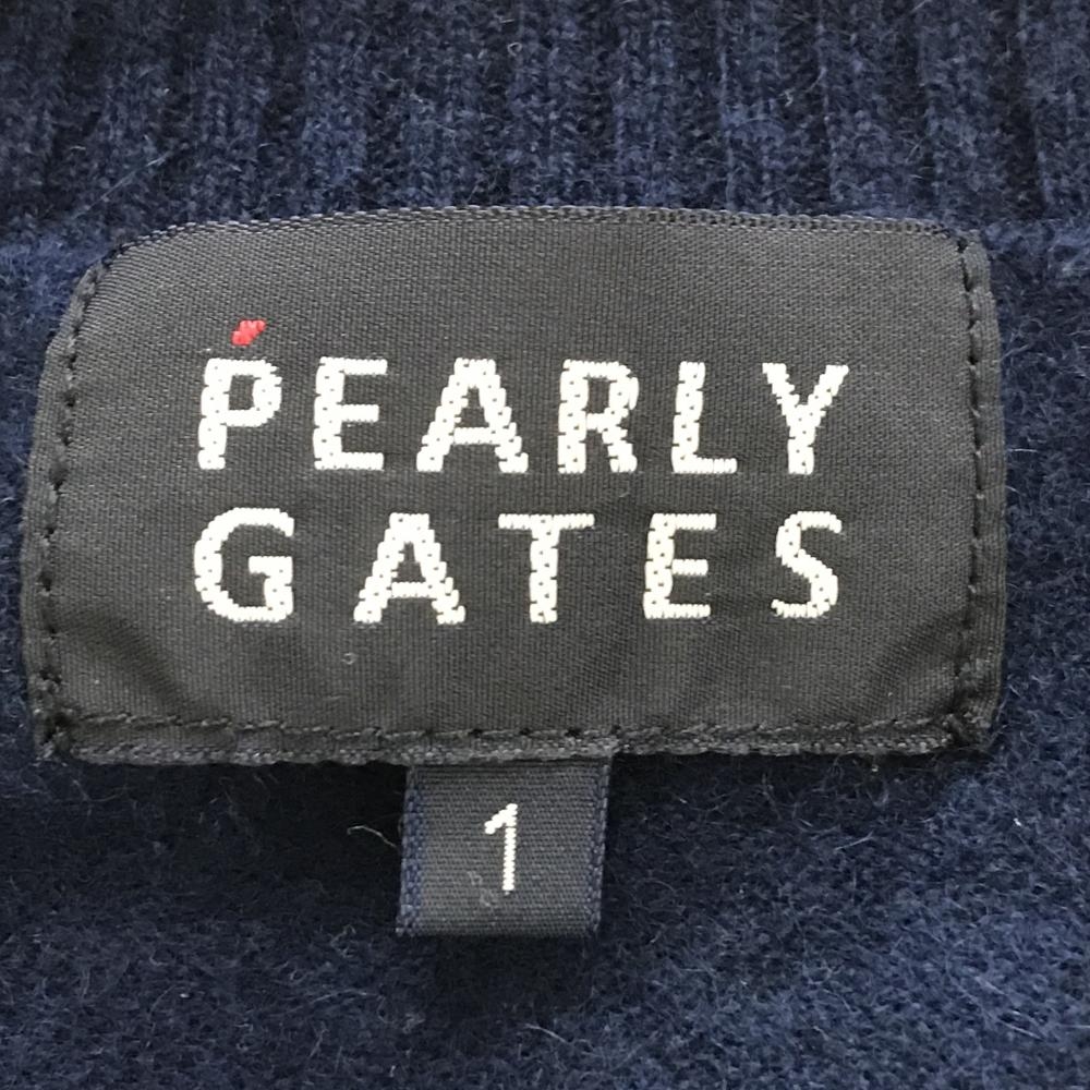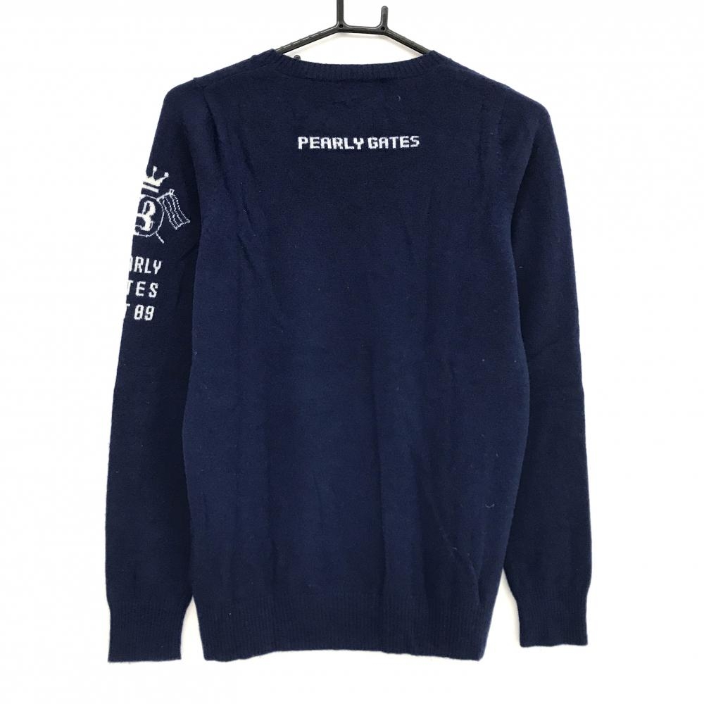 パーリーゲイツ セーター ネイビー×白 ロゴ カシミヤ100% レディース 1(M) ゴルフウェア PEARLY GATES