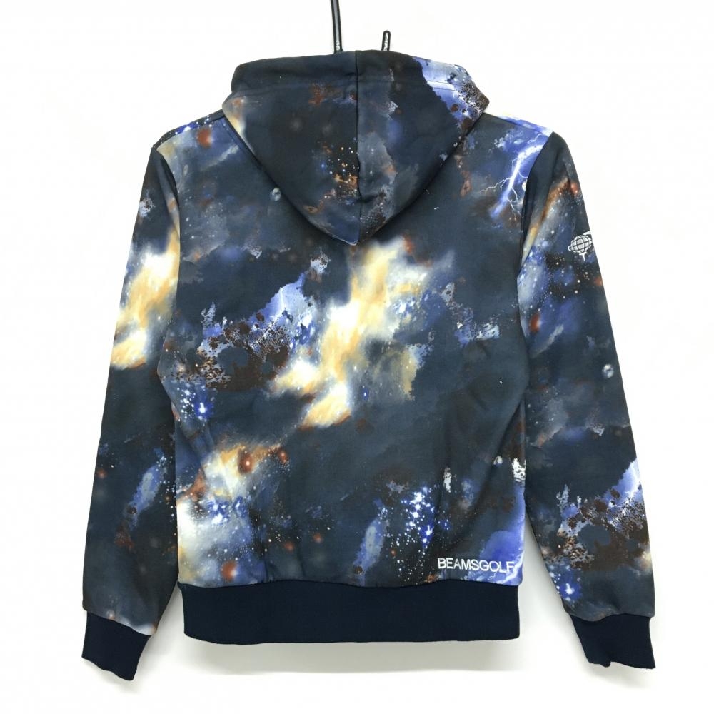 【美品】ビームスゴルフ パーカー グレー×イエロー系 総柄 ロゴプリント トレーナー レディース S ゴルフウェア BEAMS GOLF
