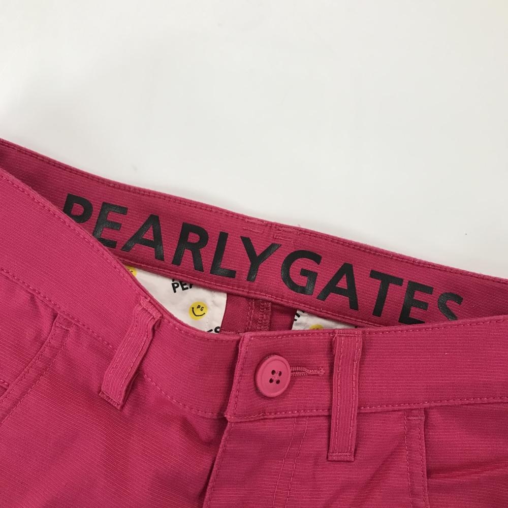 【美品】パーリーゲイツ パンツ ピンク 細目ボーダー地模様 裏地ニコちゃん レディース 0(S) ゴルフウェア PEARLY GATES