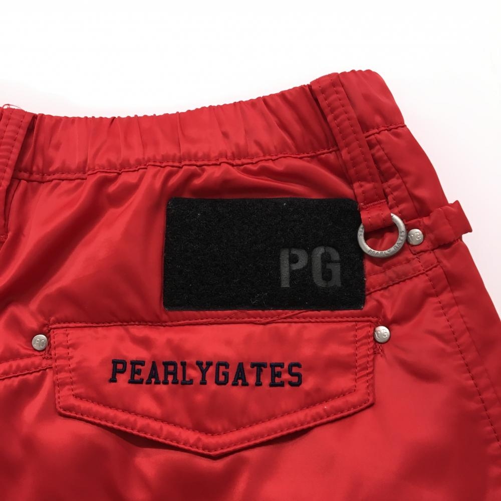 【美品】パーリーゲイツ 中綿パンツ レッド 裾ドローコード ロゴ刺しゅう レディース 0(S) ゴルフウェア PEARLY GATES