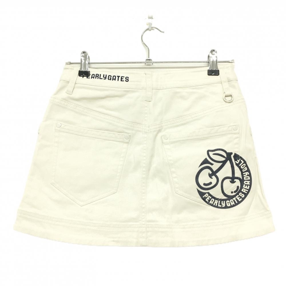 【美品】パーリーゲイツ スカート 白×ネイビー ロゴプリント レディース 1(M) ゴルフウェア PEARLY GATES