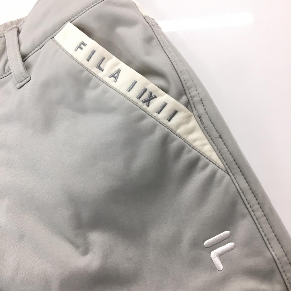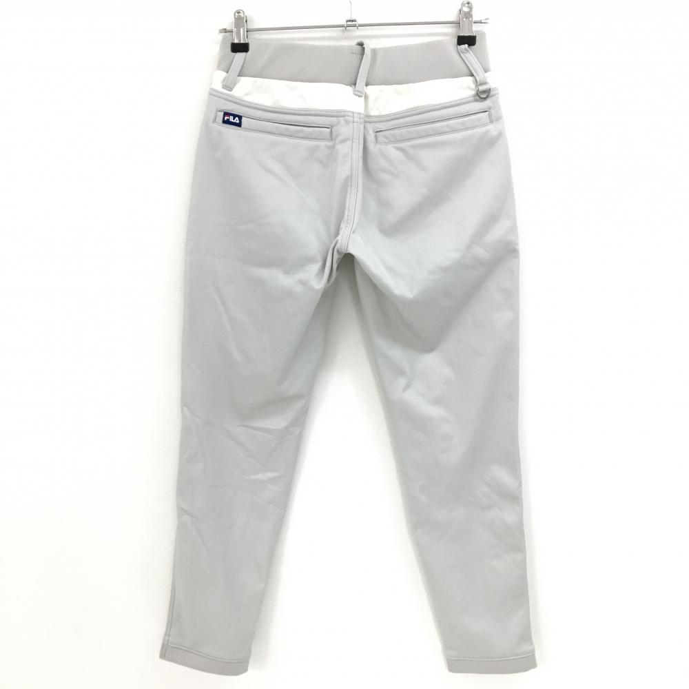 【美品】フィラゴルフ パンツ ライトグレー×白 裏起毛 レディース M ゴルフウェア FILA GOLF