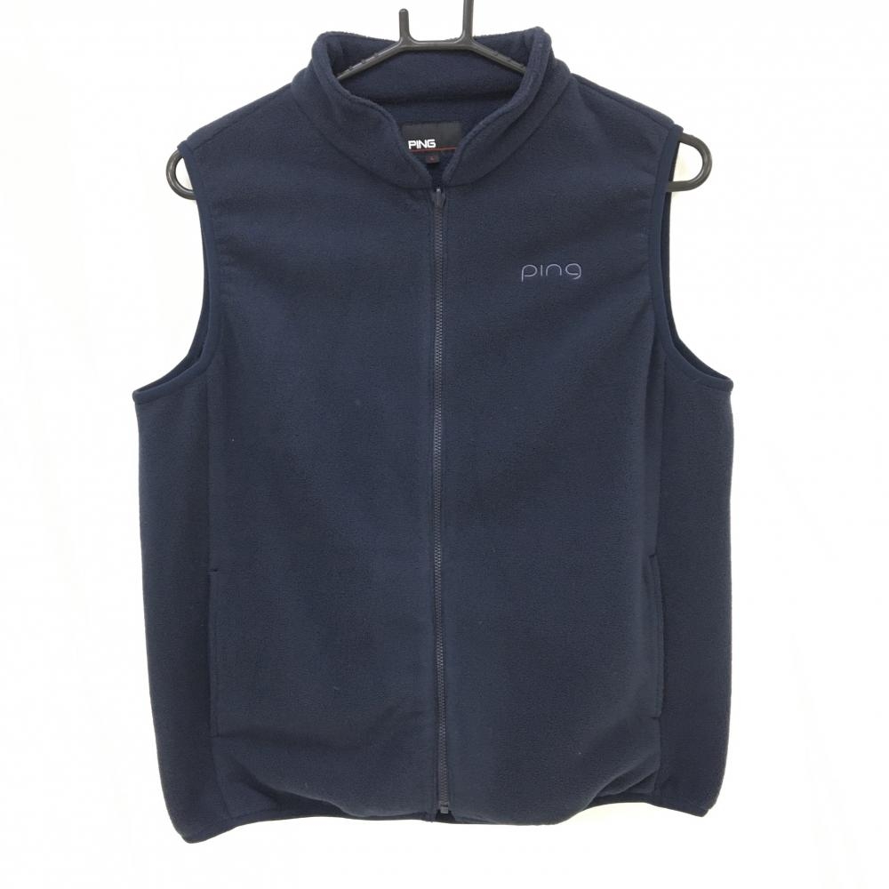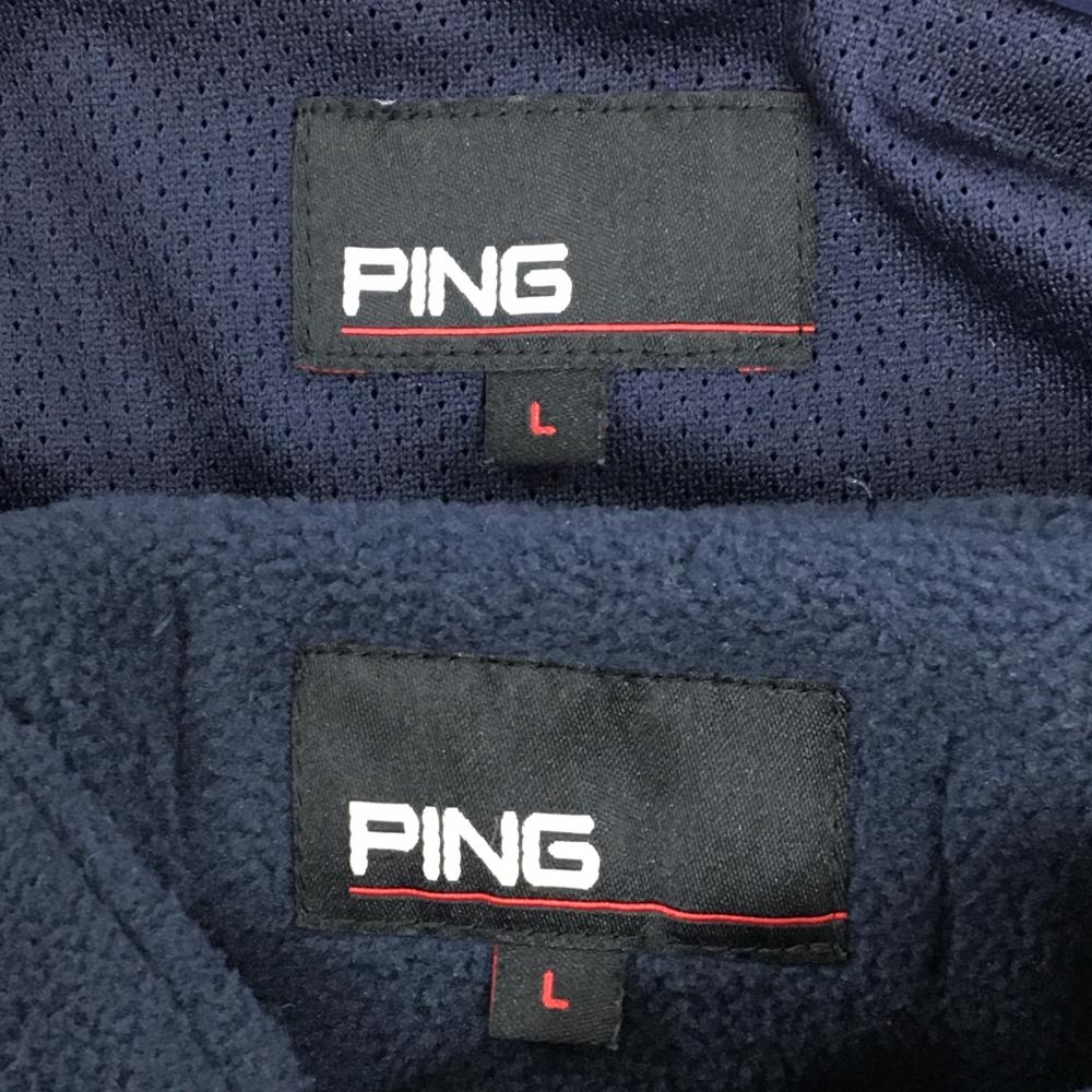【美品】ピン ライナー付ジャケット ネイビー フリースベスト フード収納 メンズ L ゴルフウェア PING