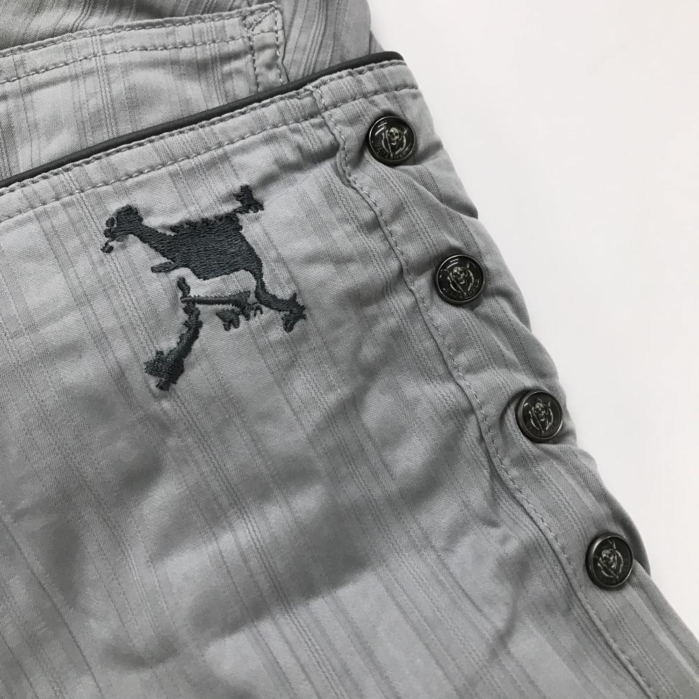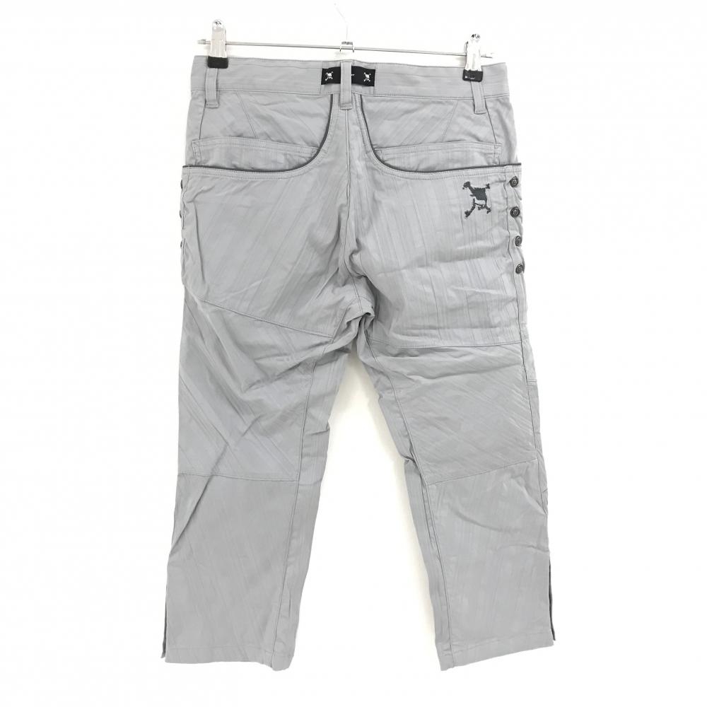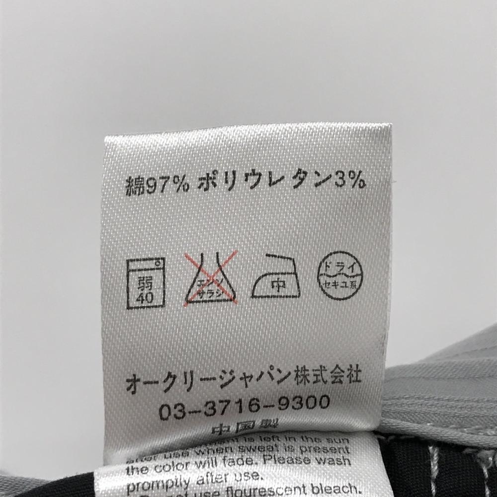 【美品】オークリー 七分丈パンツ グレー 斜めストライプ調 ロゴ刺しゅう 裾ボタン メンズ 30 ゴルフウェア Oakley