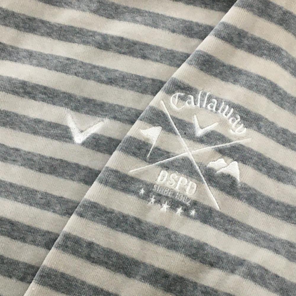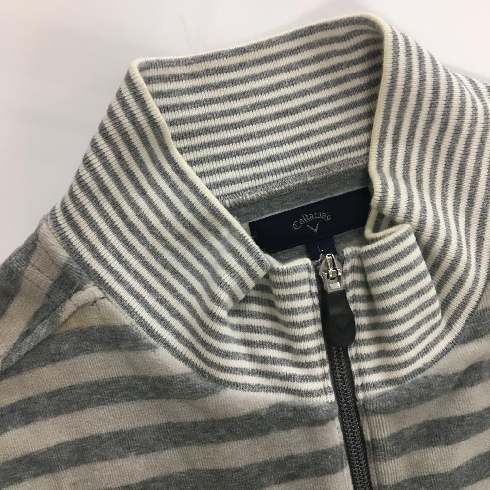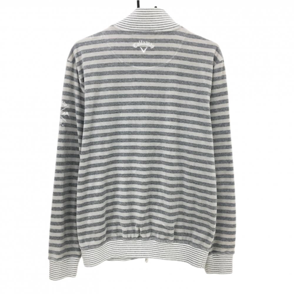 キャロウェイ ハイネックジャケット グレー×ライトグレー ボーダー フリース調 ロゴ刺しゅう メンズ L ゴルフウェア Callaway