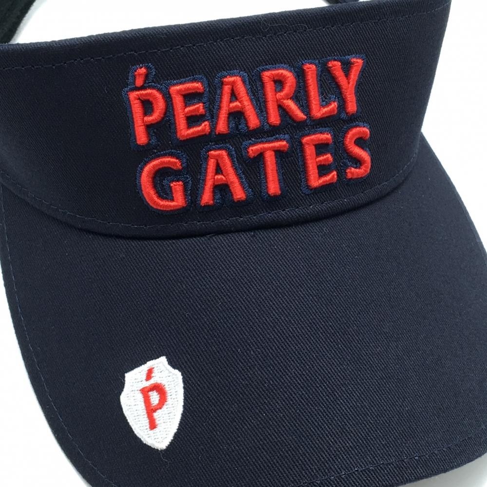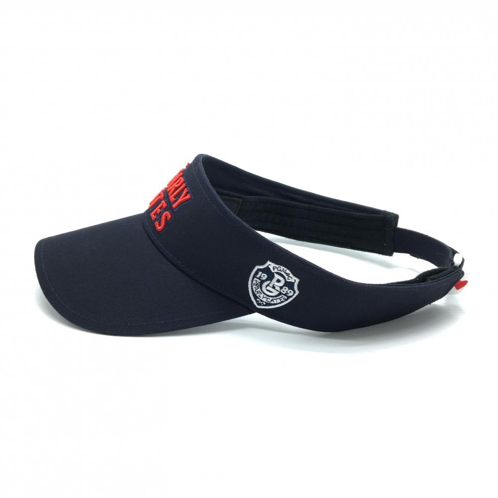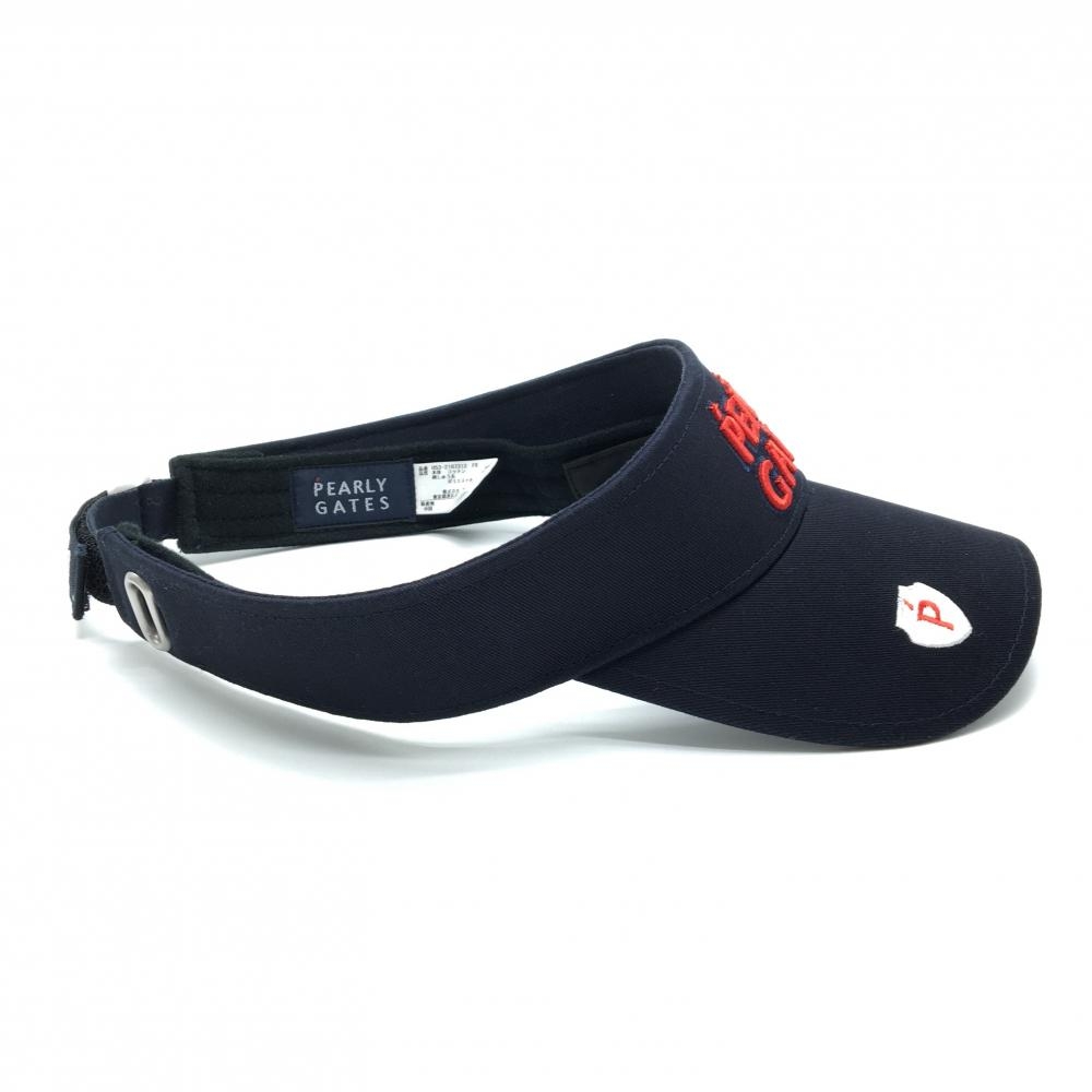 【超美品】パーリーゲイツ サンバイザー ネイビー×レッド 汗取りパッド付 立体ロゴ FR ゴルフウェア PEARLY GATES