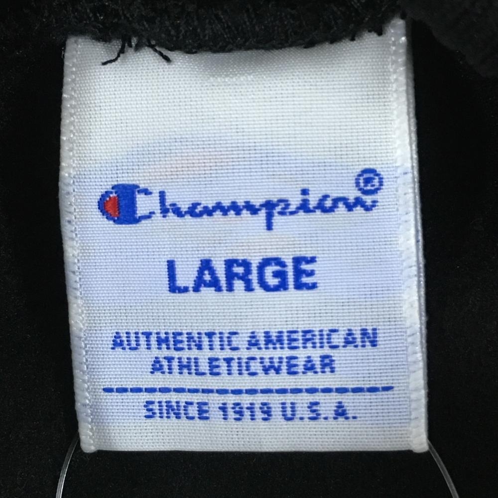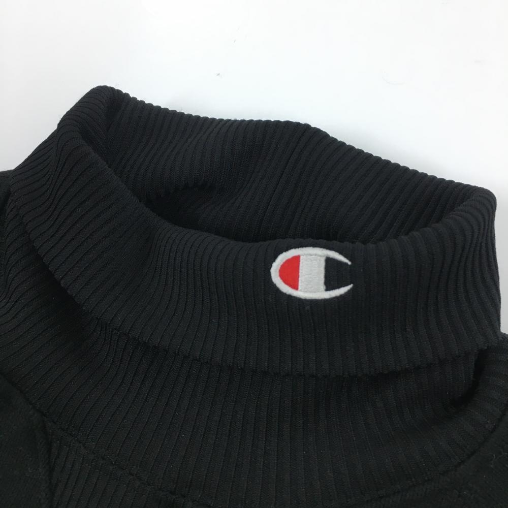 【超美品】チャンピオン タートルネックセーター 黒×イエロー フロントロゴ 裏起毛 袖ワッペン レディース LARGE ゴルフウェア Champion