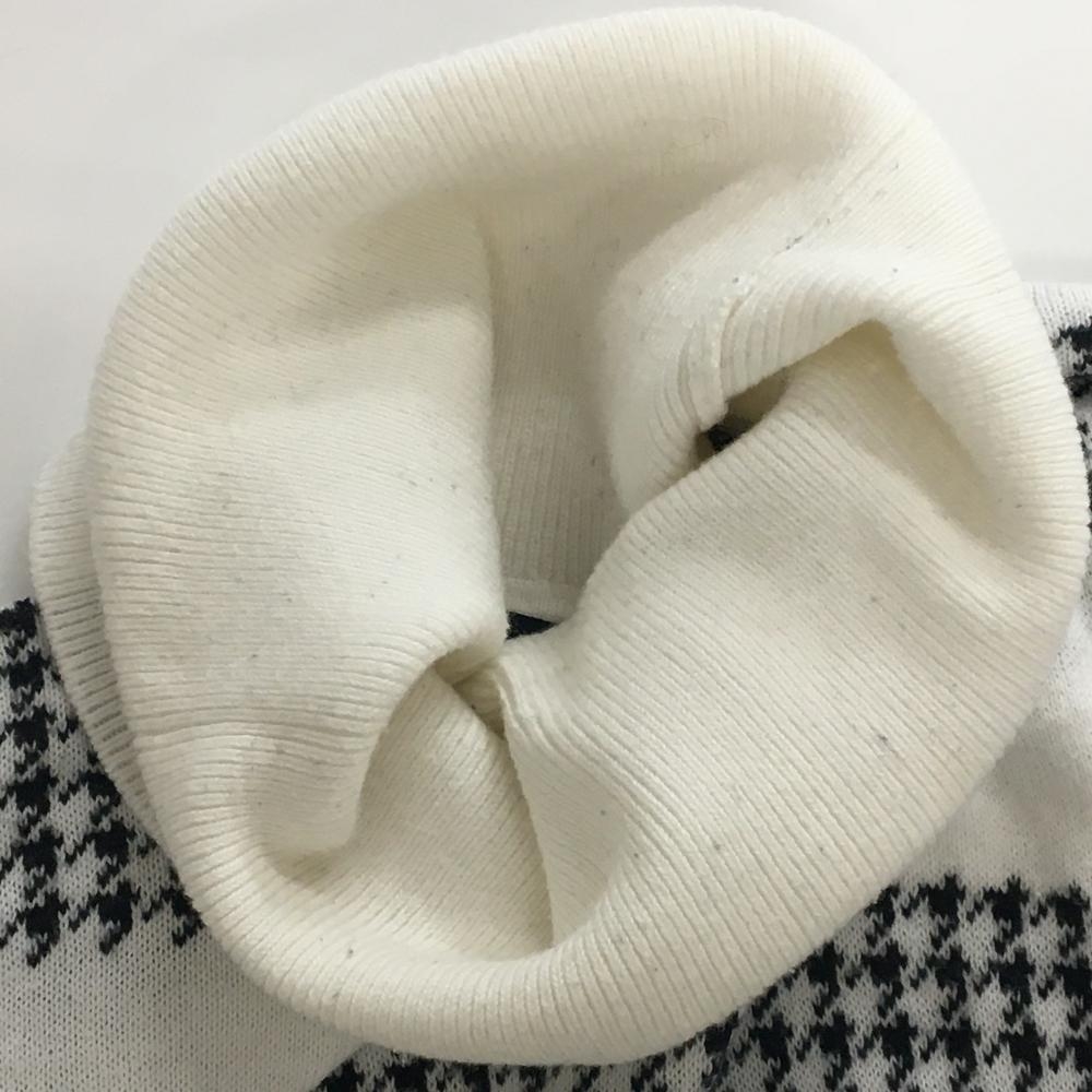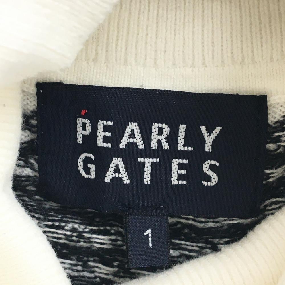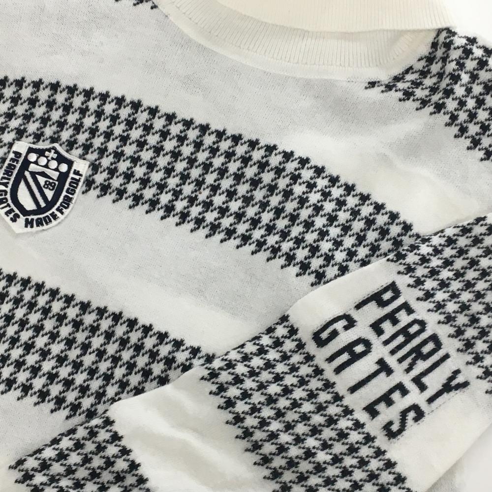 パーリーゲイツ タートルネックセーター 白×ネイビー 千鳥格子ボーダー コットン100% レディース 1(M) ゴルフウェア PEARLY GATES