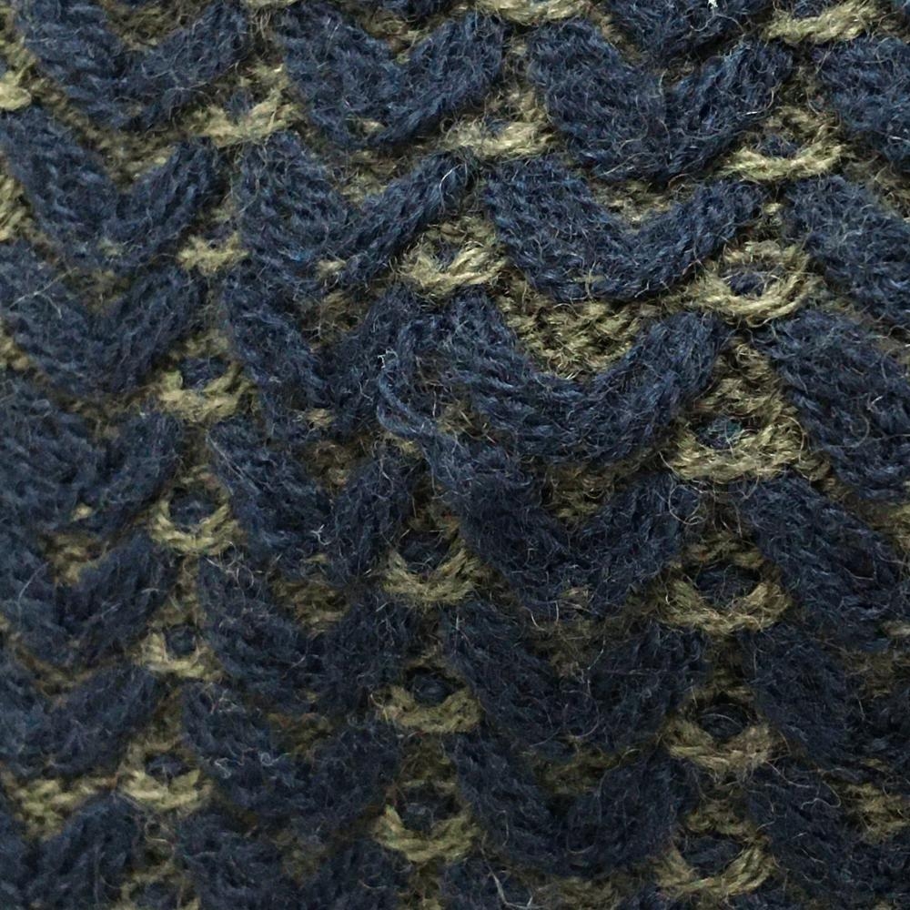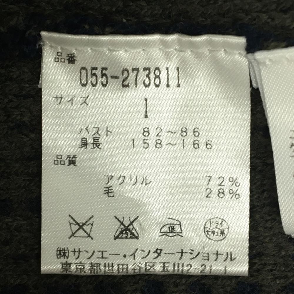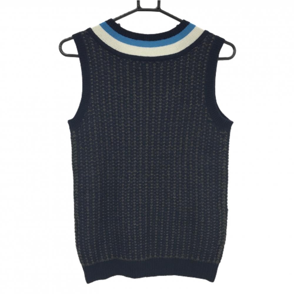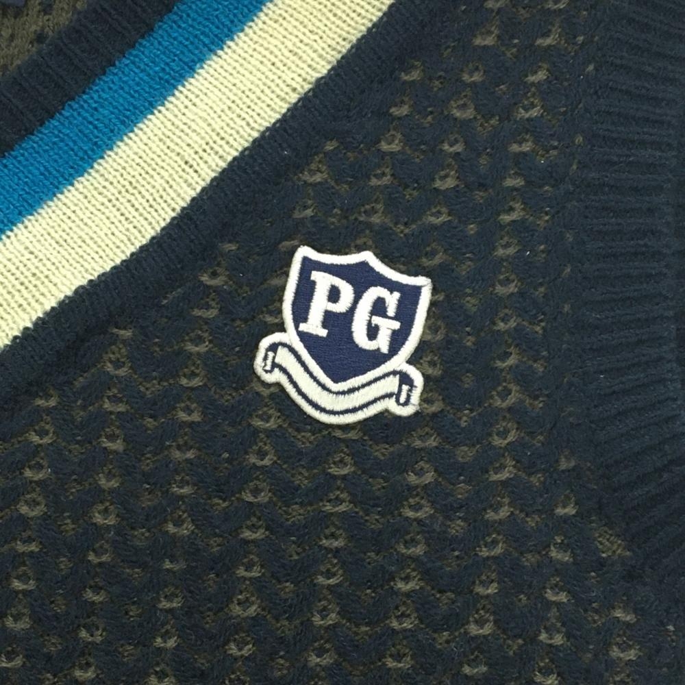 【美品】パーリーゲイツ ニットベスト ネイビー×カーキ 総柄編み ウール混 Vネック レディース 1(M) ゴルフウェア PEARLY GATES