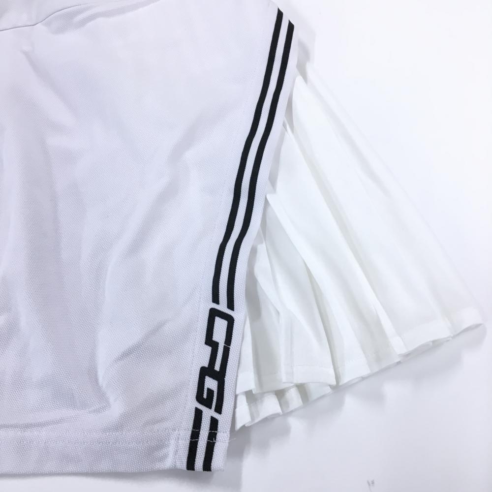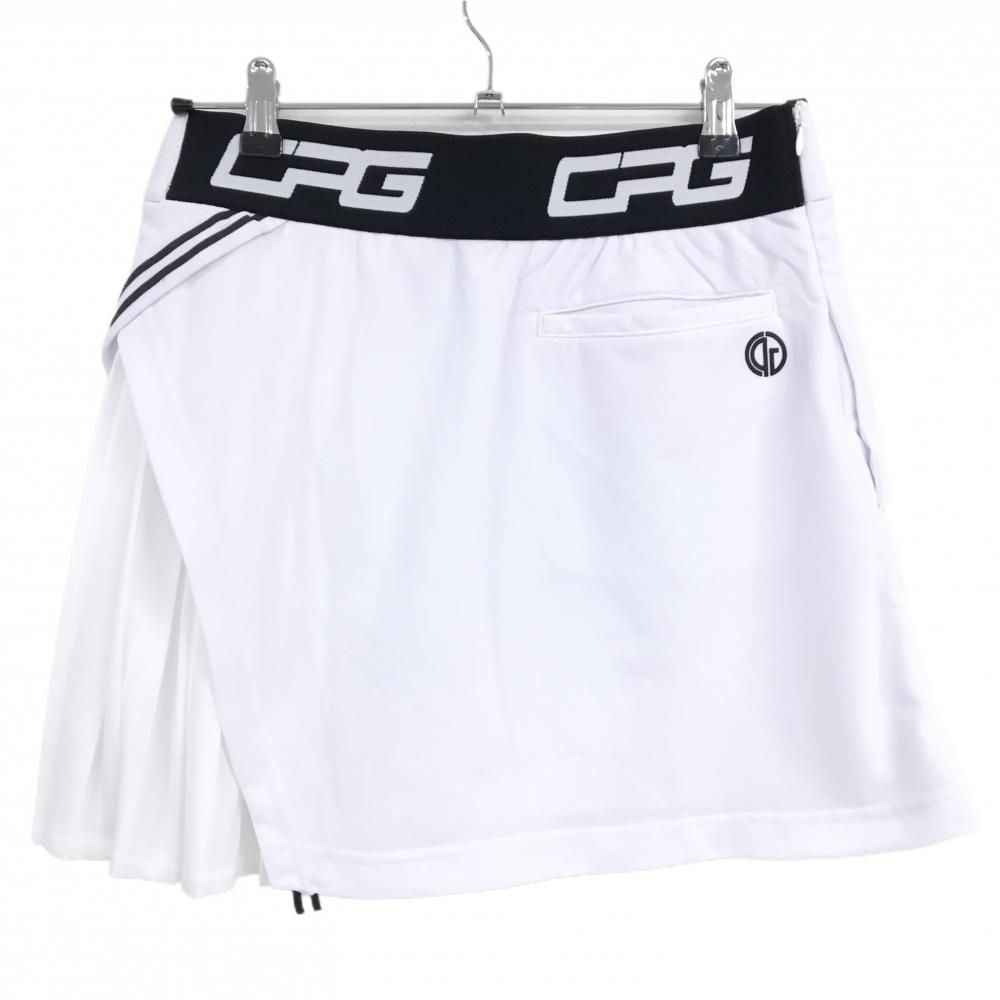 【超美品】CPG スカート 白×黒 一部プリーツ ストレッチ 裏地付き ウエストロゴゴム レディース 3(L) ゴルフウェア CPG
