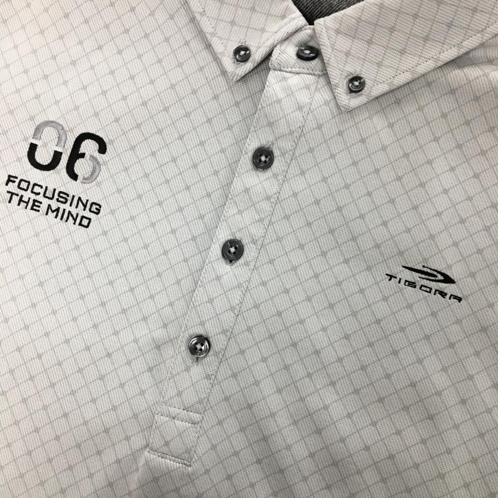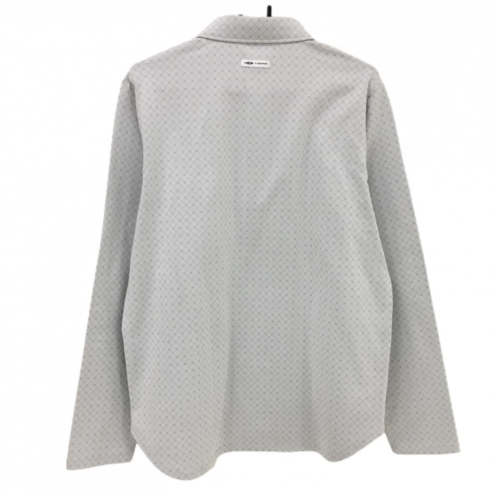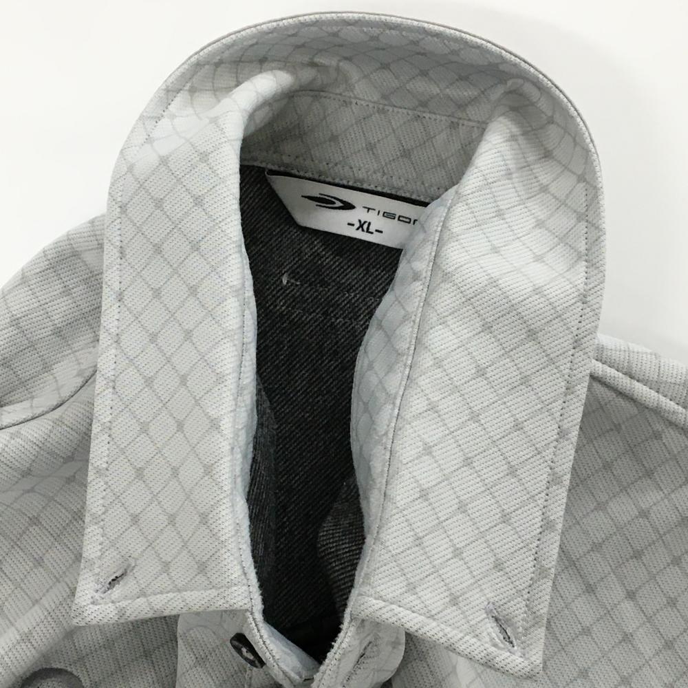 【美品】ティゴラ 長袖ポロシャツ ライトグレー×グレー 総柄 裏微起毛 ボタンダウン メンズ XL ゴルフウェア TIGORA