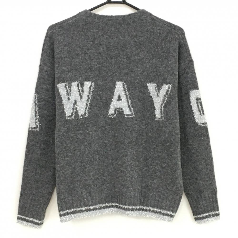 【美品】キャロウェイ セーター 杢グレー×シルバー フロントロゴ ウール混 ニット レディース L ゴルフウェア 2024年モデル Callaway