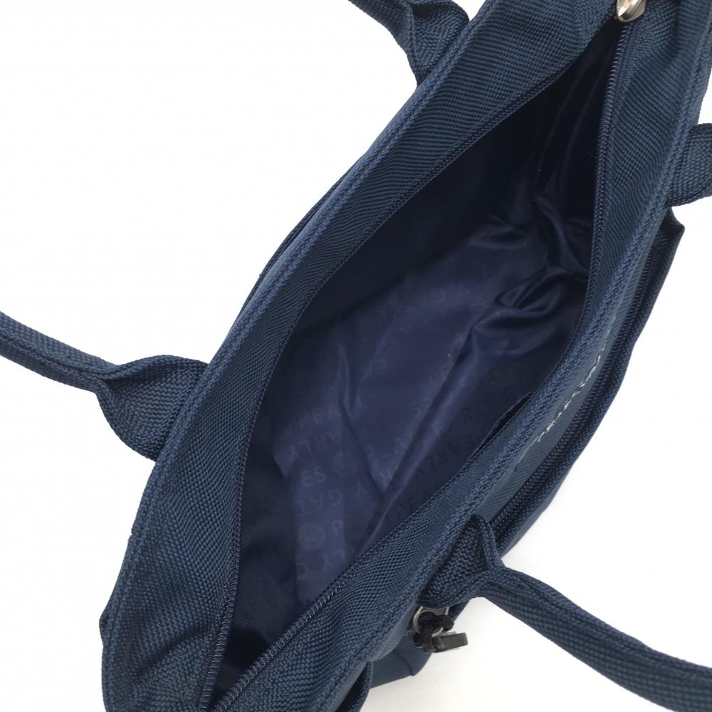 【超美品】パーリーゲイツ カートバッグ ネイビー×白 内外ポケット 裏地英字総柄・ニコちゃん ゴルフ PEARLY GATES