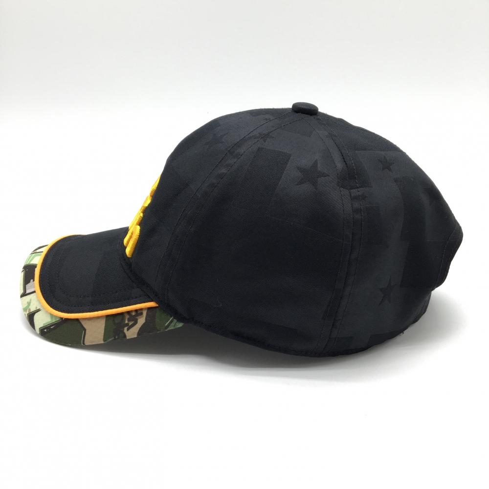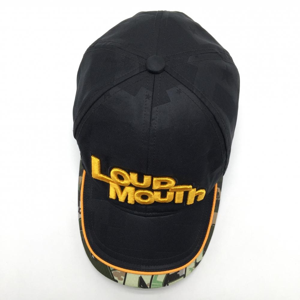 【美品】ラウドマウス キャップ 黒×オレンジ 立体ロゴ つば縁総柄 タグスカモ ゴルフウェア LOUDMOUTH