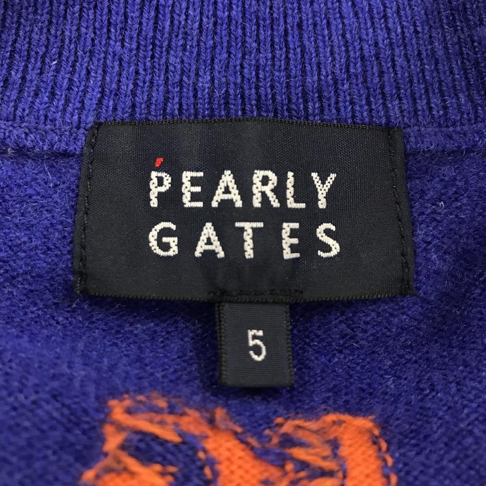 【超美品】パーリーゲイツ ニットジャケット ブルーネイビー×オレンジ フロントロゴ メンズ 5(L) ゴルフウェア PEARLY GATES